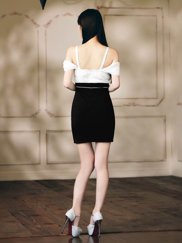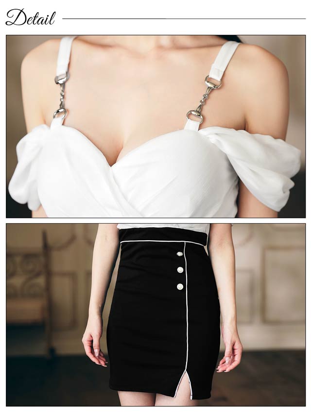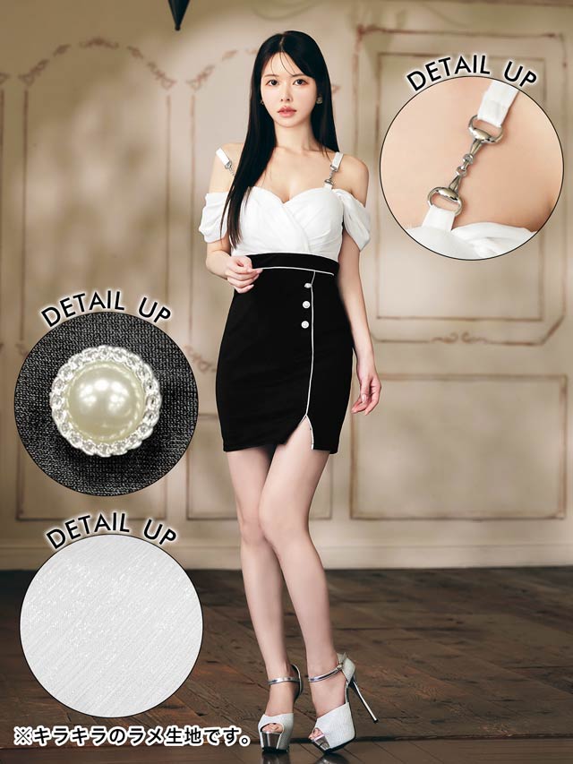 9/8新作!カシュクールオフショルパイピングスリットタイトミニ丈キャバドレス[SML/3サイズ展開]