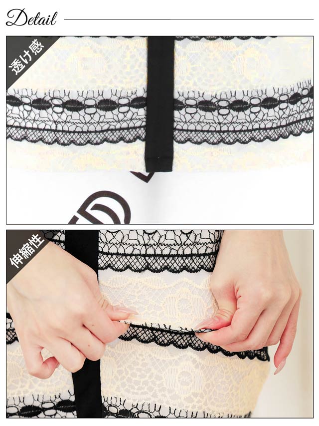 9/8新作!襟付きモノトーンレースボーダータイトミニ丈キャバドレス[SML/3サイズ展開]