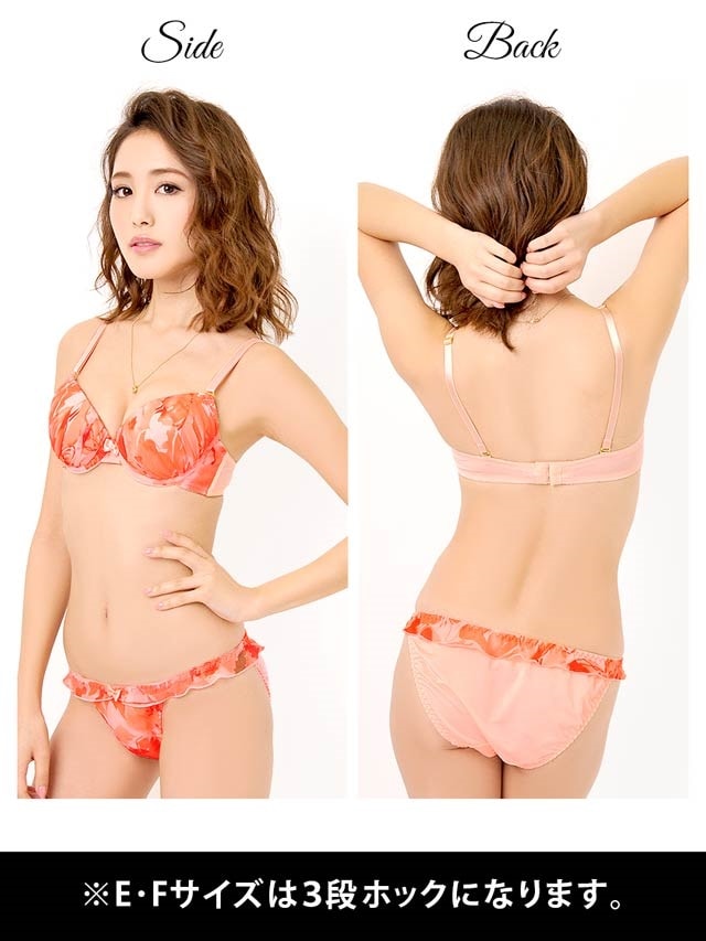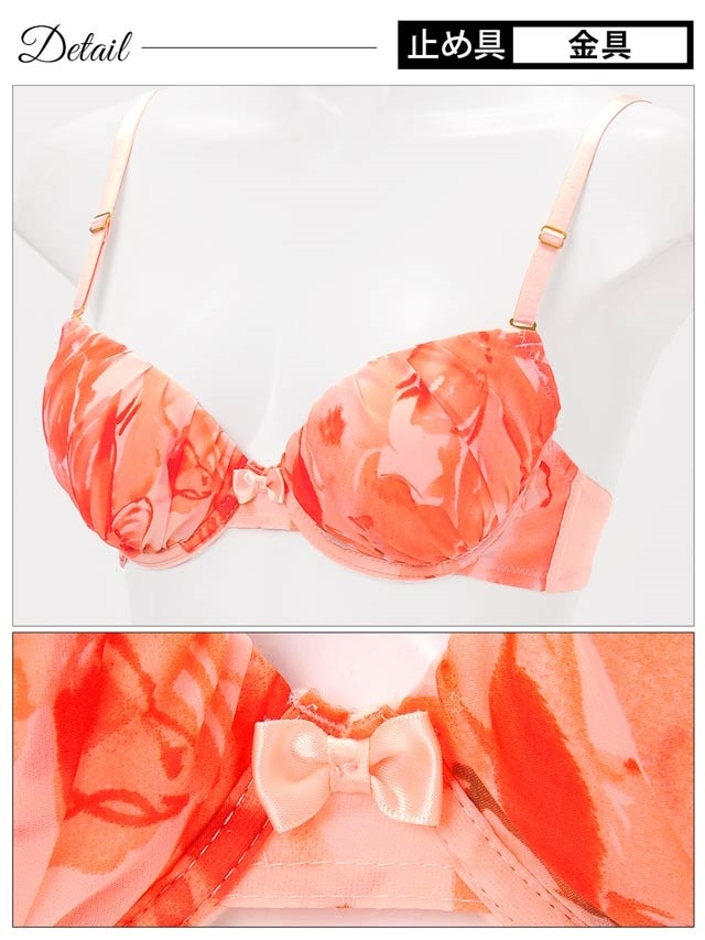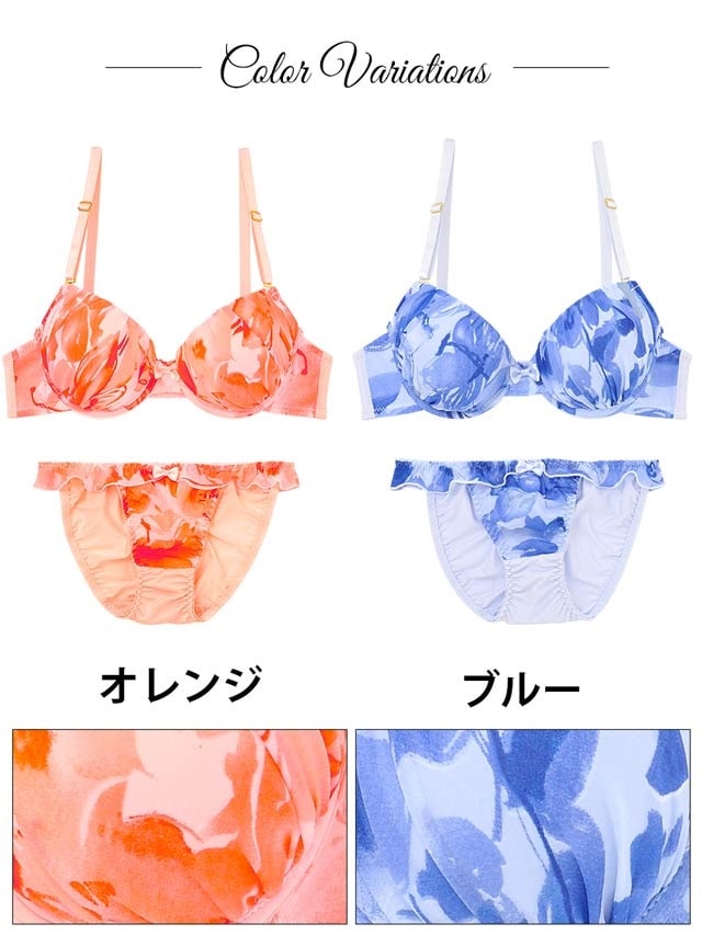 冬の寒さを吹き飛ばすような、明るいカラーのランジェが登場!人気の水彩Flower柄は身に着けるだけで南国気分になれちゃいます♪ブラ中央にはプチリボンを飾って、さりげなく女の子らしさも演出します。ショーツはフリルラインで可愛さと華奢見せ効果もプラス♪お洋服の前に、ランジェリーから春を先取りしてみませんか?♪