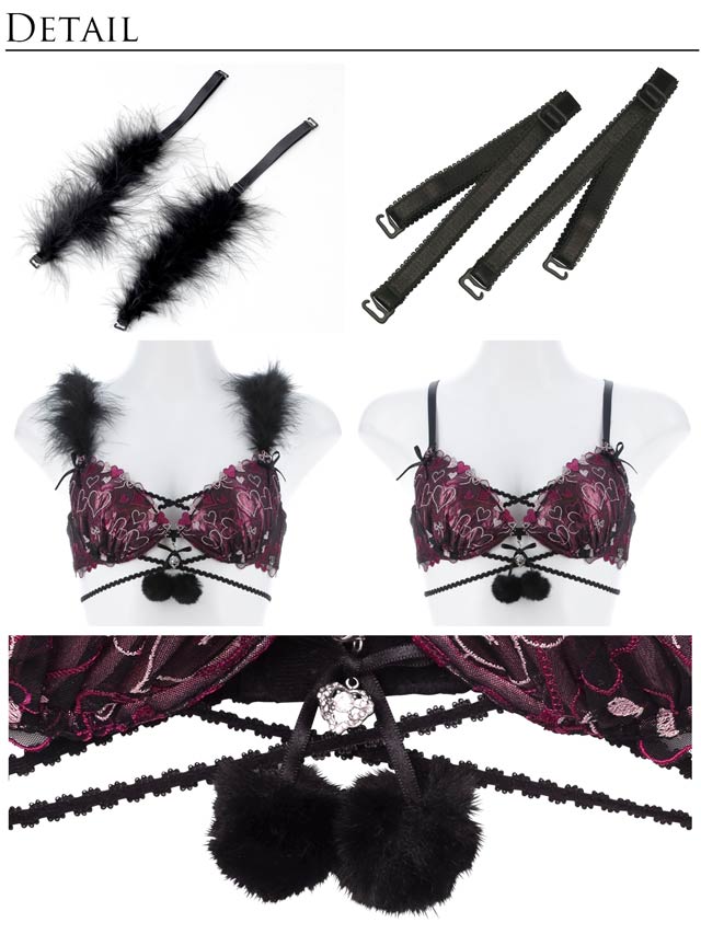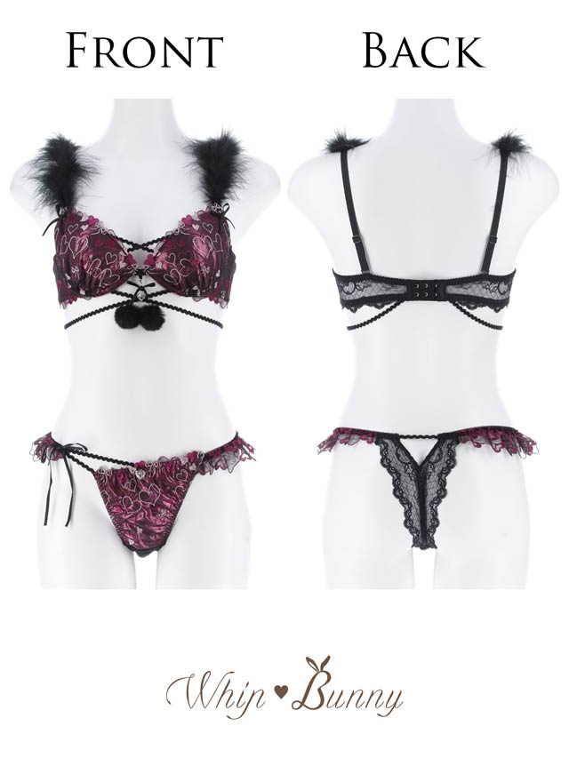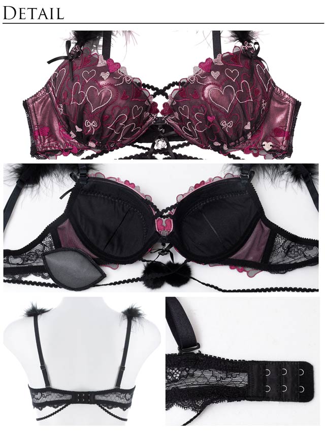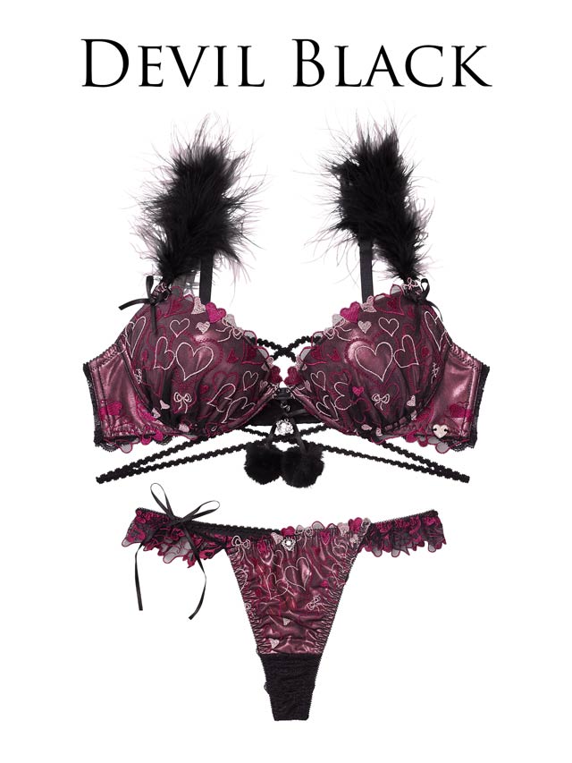 イベントの多い秋冬にピッタリ!ハート刺繍が胸元にたっぷり描かれた天使と悪魔を連想させる大人セクシーランジェリー!