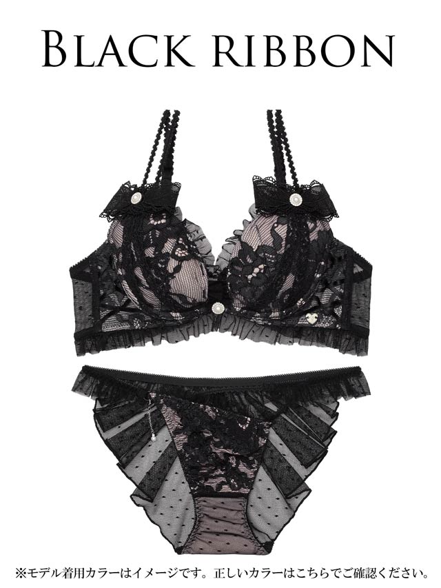 ドットチュール×リボンモチーフが可憐に映える、大人フェミニンなランジェリーシリーズ。