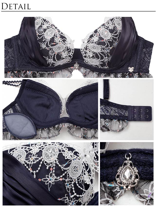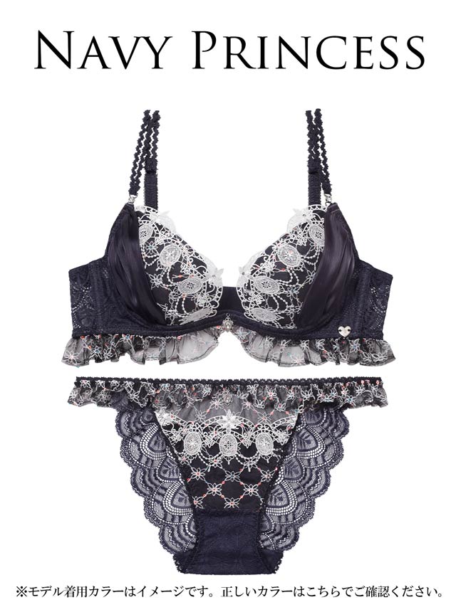 立体感のあるラメシフォンと、カップ上辺に輝くラインストーンが目を惹くお姫様気分のランジェリー!