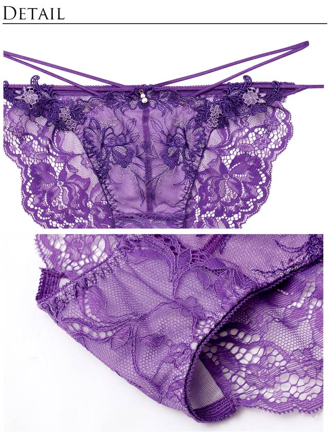 ショーツサイドにも繊細なケミカルモチーフを使用してラグジュアリーに仕上げています。 セクシーの王道BLACKと、女性の魅力を引き立たせるVIOLETの2色展開です!