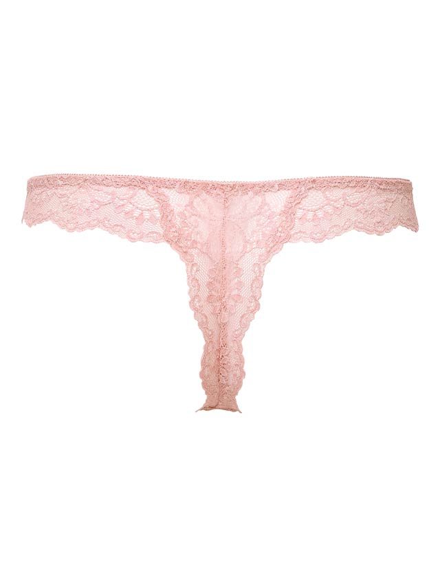 繊細なアラベスク柄が美しい日本製の編みレースをショーツバックに使用。華奢な作りで、女性らしさを引き立てます。
