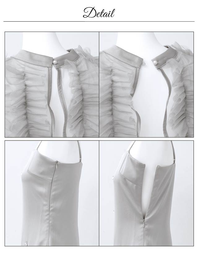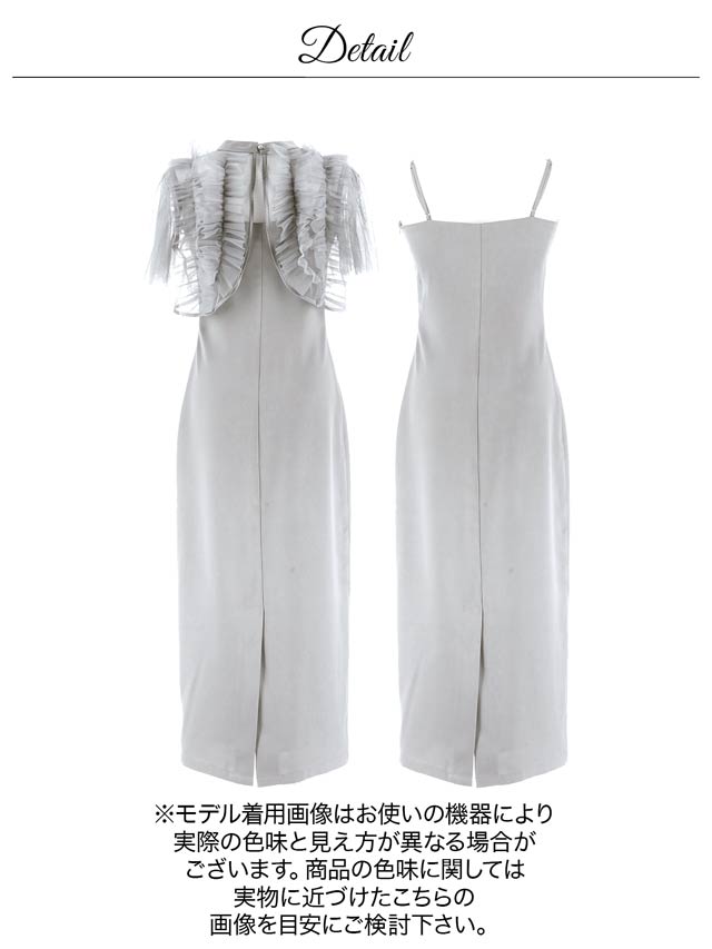 ドレス:ファスナー左/ストラップ調節可/裏地あり/スリットあり