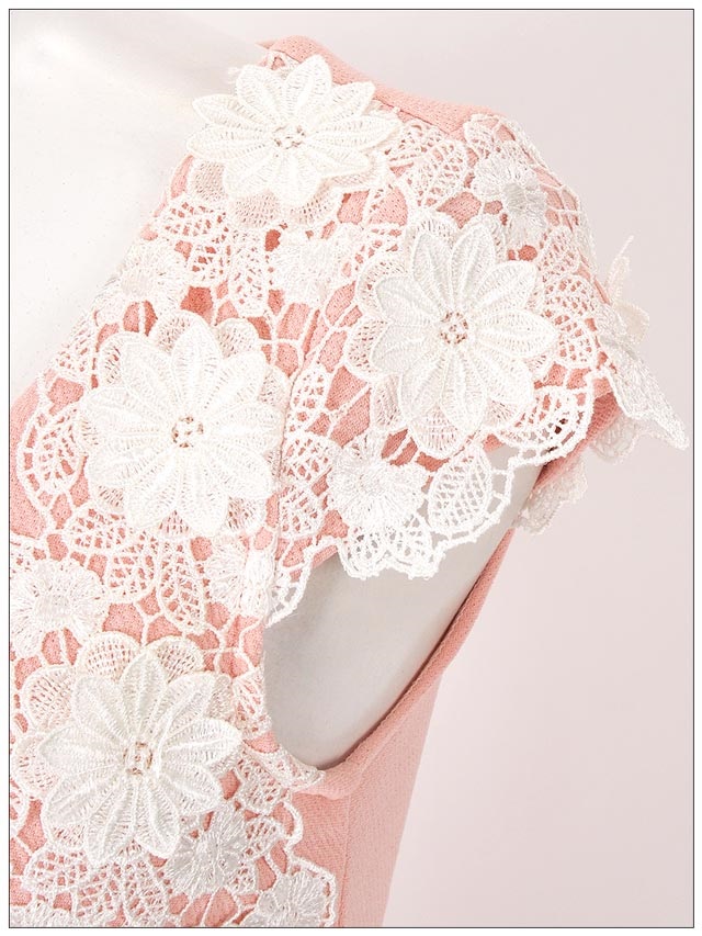 立体的なコードレースの花柄が高級感のある清楚なペプラムミニドレス。胸元とウエスト部分に並べられたパールxビジューで華やかさをプラス。女子会にもオススメのフェミニンドレスです。