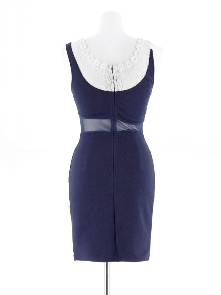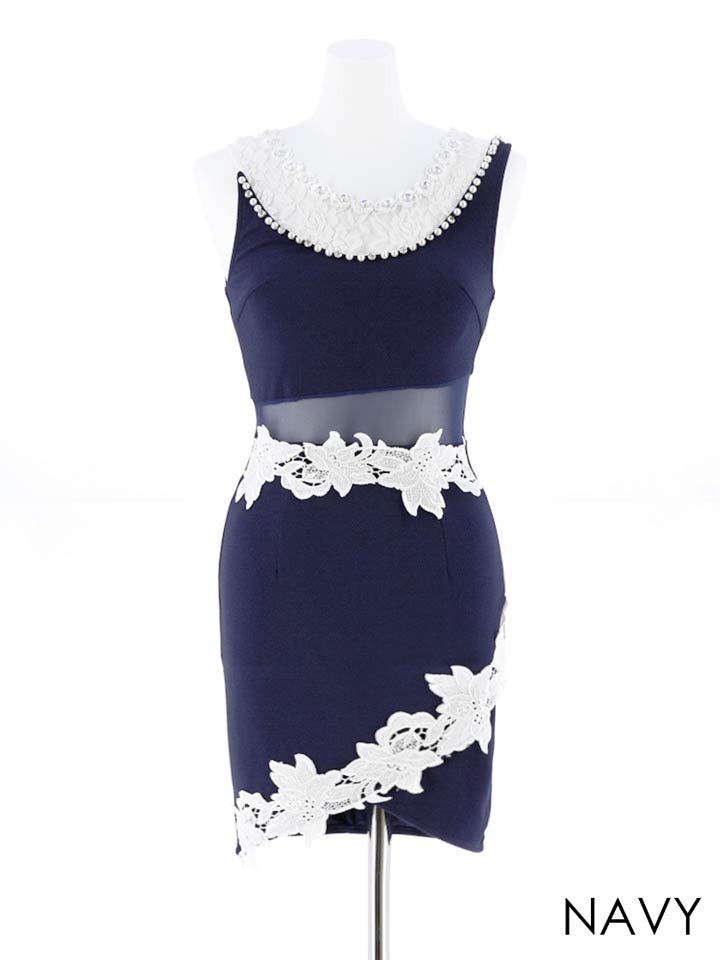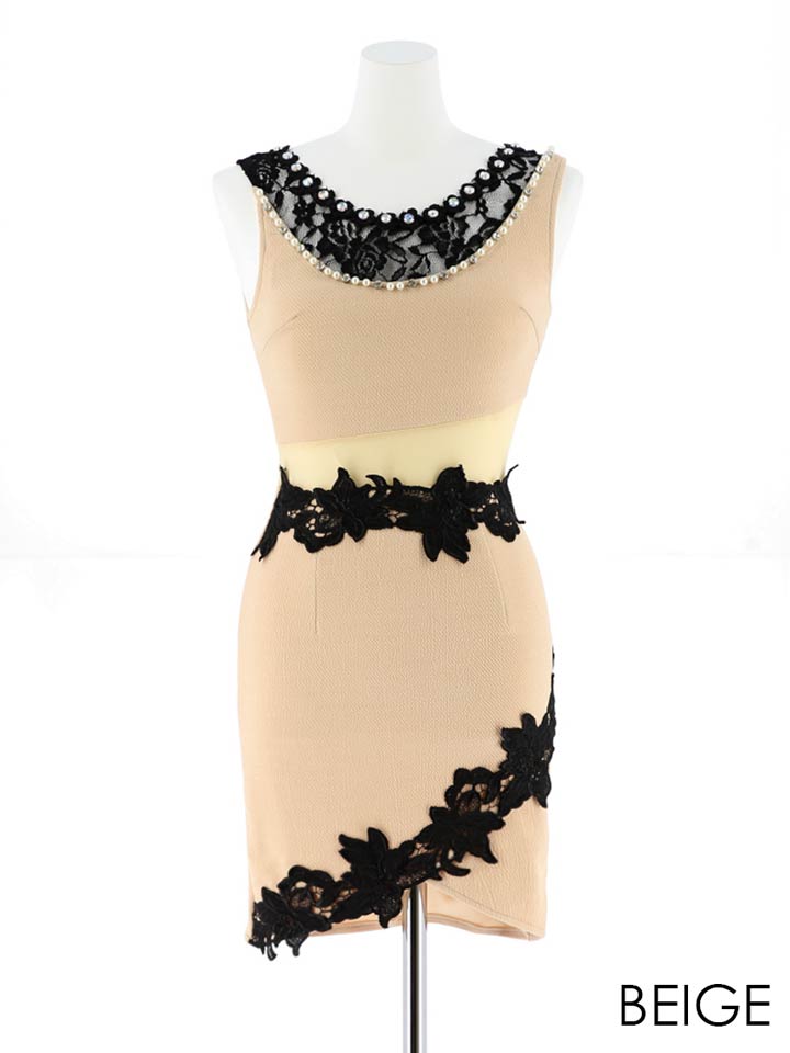 デコルテやウエストの透けデザインが色っぽさ抜群のタイトミニドレス。デコルテには繊細なレースの上にパールやビジューをあしらい顔周りを華やかに仕上げます。スカート部分はチューリップ風カットデザインですっきりとした美脚を演出。やや深めのネックラインなので胸元の露出を控えたい方におすすめの1枚です。