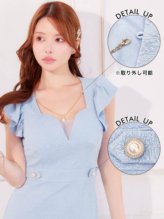 キラリと輝く一粒パールチャームが美しいミニドレス。チャームは取り外し可能です!大きく開いた胸元とチャームの高級感がデコルテから華やかな印象を与えます♪ ボリューム感のあるフリル袖が華奢魅せしつつ甘さもばっちりな1着です。