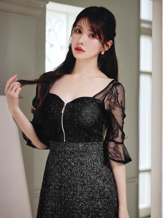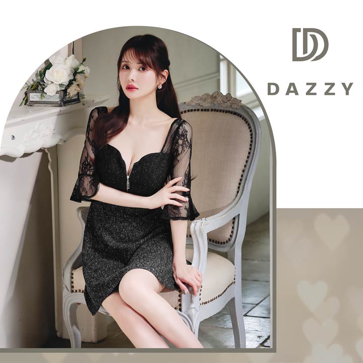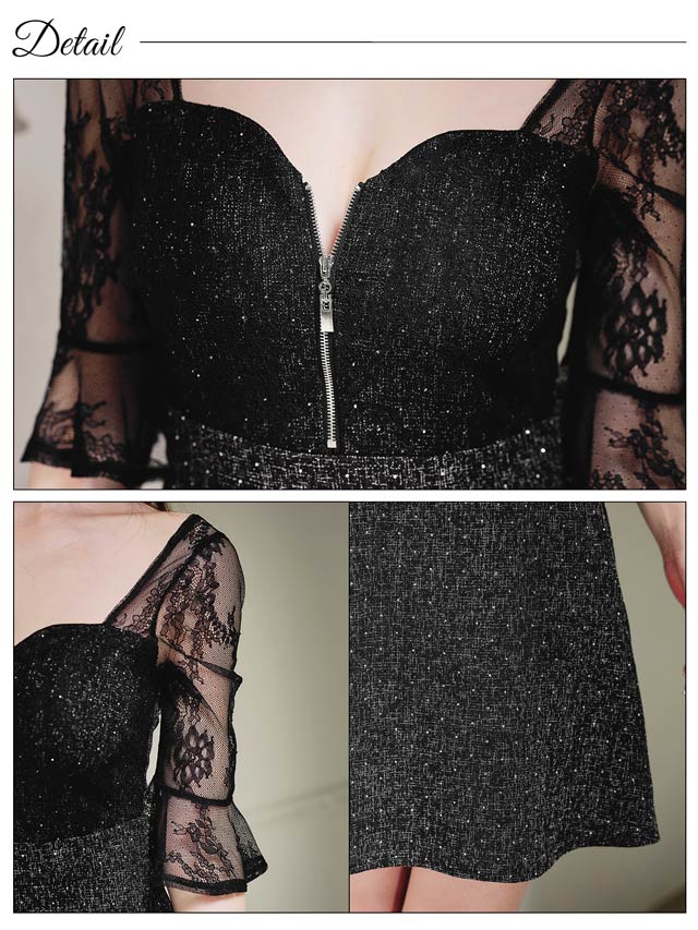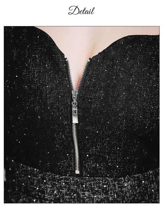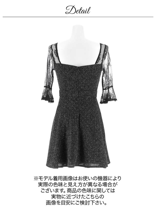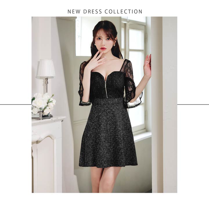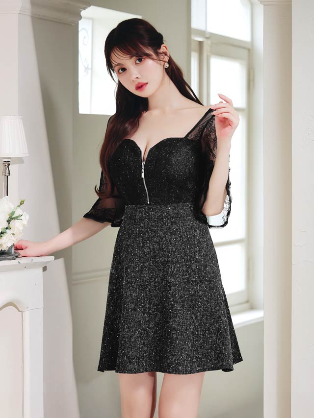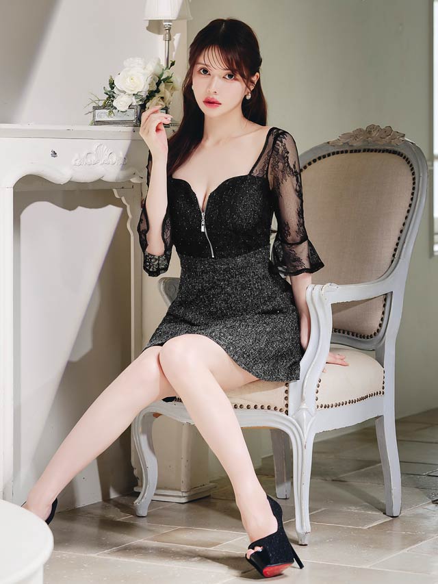 高見えなツイード素材に谷間の魅せ方を自由に変えられるフロントジップを加えたミニドレス。ハイウエスト切り替えのAラインシルエットが女性らしく柔らかい雰囲気を演出します◎ 透け感のある五分袖は二の腕周りをカバーしてくれるのも嬉しいポイントです。