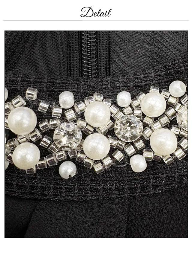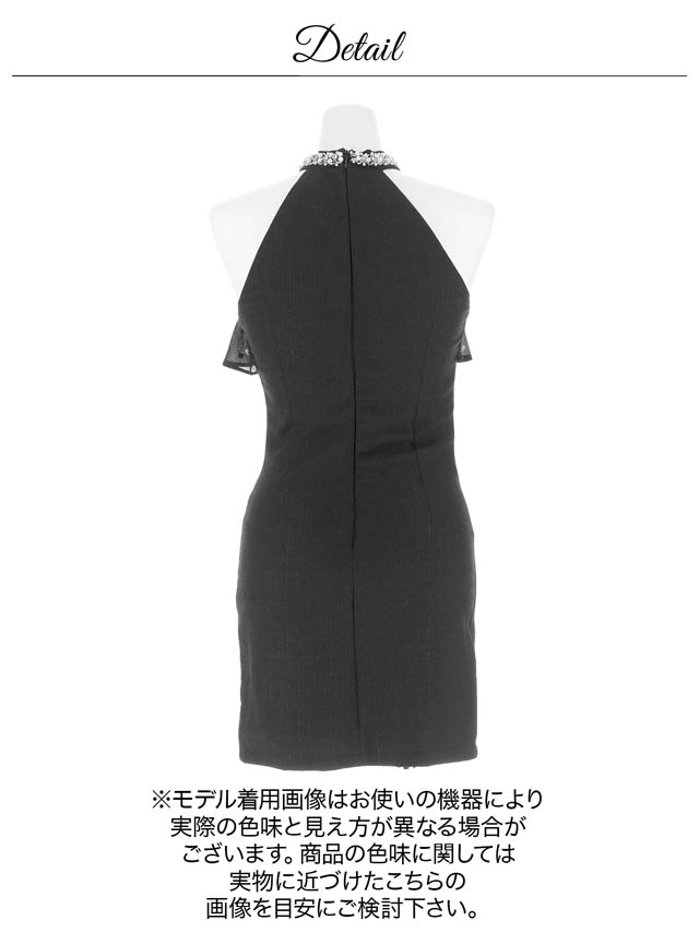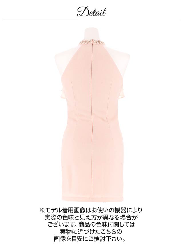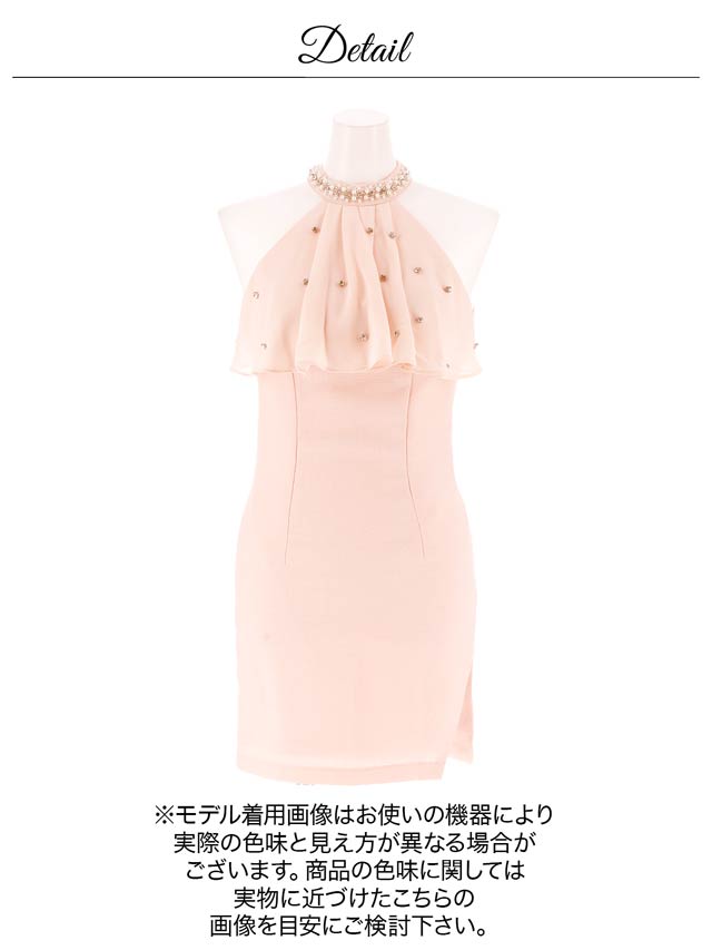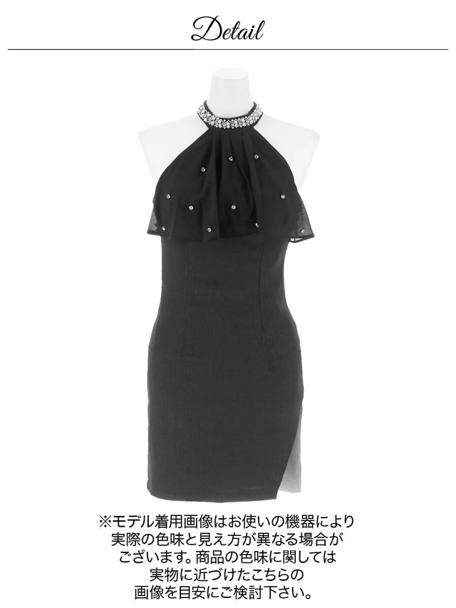 煌びやかなラインストーンを散りばめたアメスリ仕様が大人セクシーなミニドレス。首元の細かいパールビジューがお顔周りからゴージャス感を与えてくれる高見え要素たっぷりな1着◎ シースルースリットの太腿見せも魅力的です♪