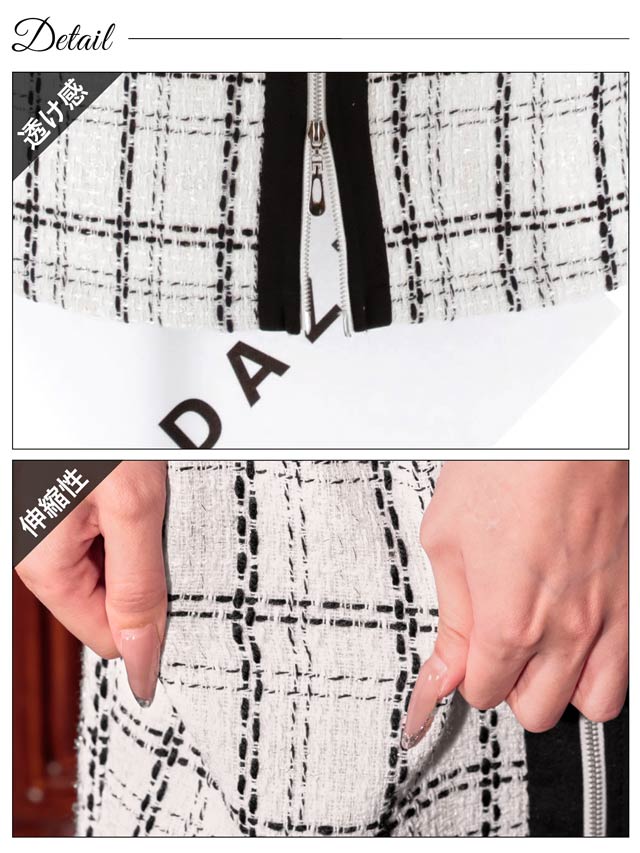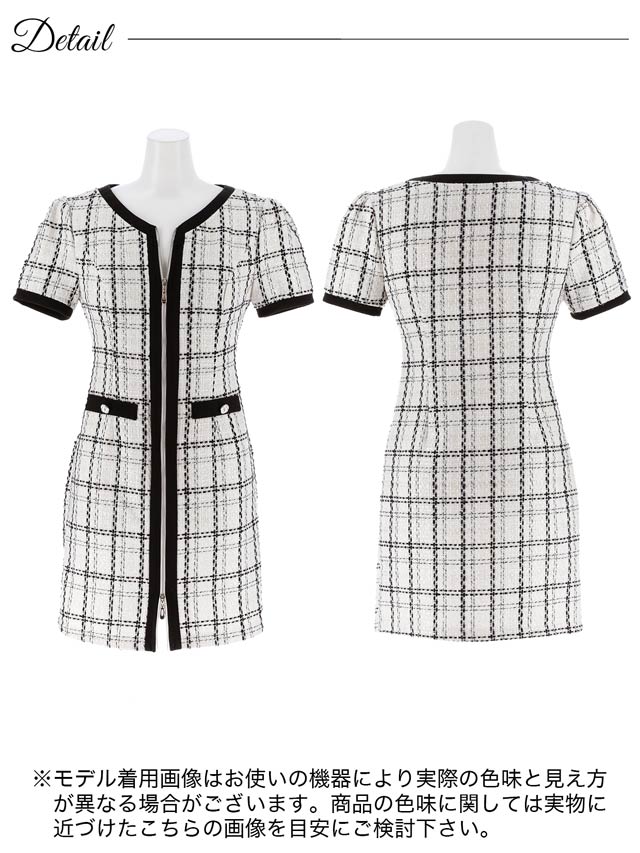 華やかでガーリーなツイードチェックが印象的なミニドレス。シルエットにメリハリを与えてくれるパイピング加工でスッキリとしたスタイルに◎ 上下ファスナーなので胸元とスリット両方調整できるのも嬉しいポイントです!