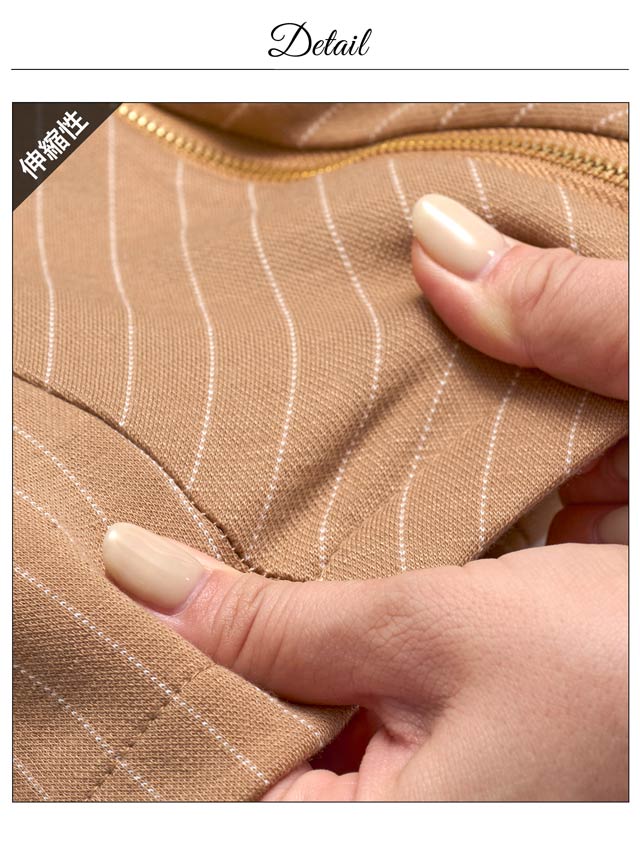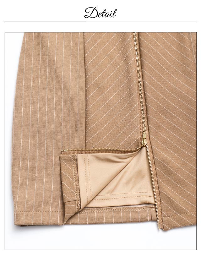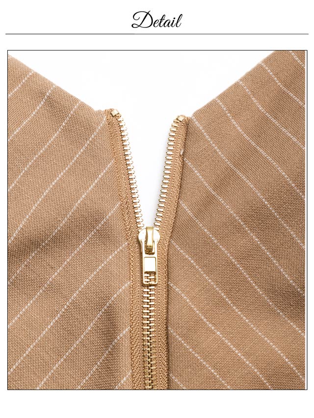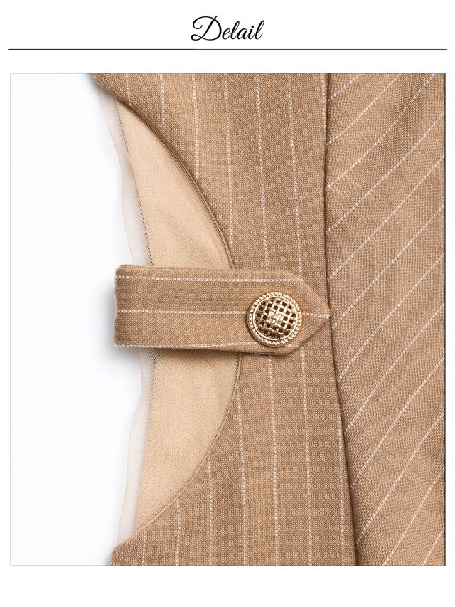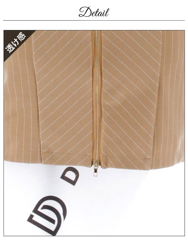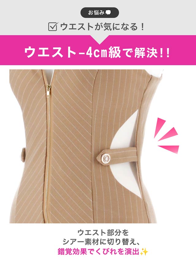 クールで品のあるストライプ柄にウエストのくびれ透けが大人セクシーなミニドレス。透け部分にベルトモチーフをあしらいよりスタイルアップ効果を上げてくれる1着。上下ファスナーで肌の見せ方を自由にアレンジ出来るのも嬉しいポイントです。