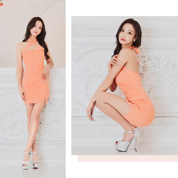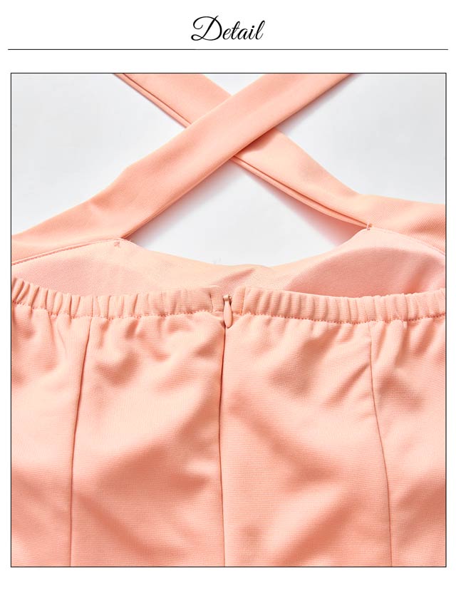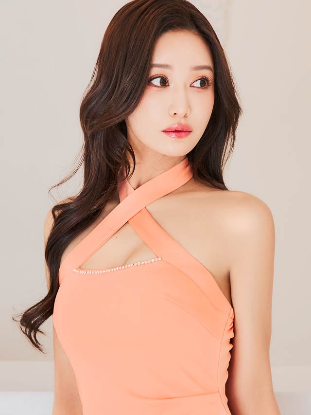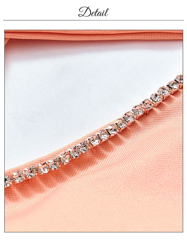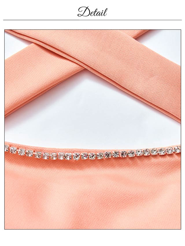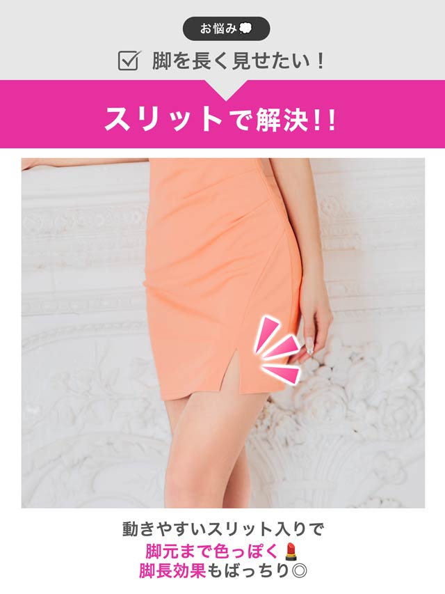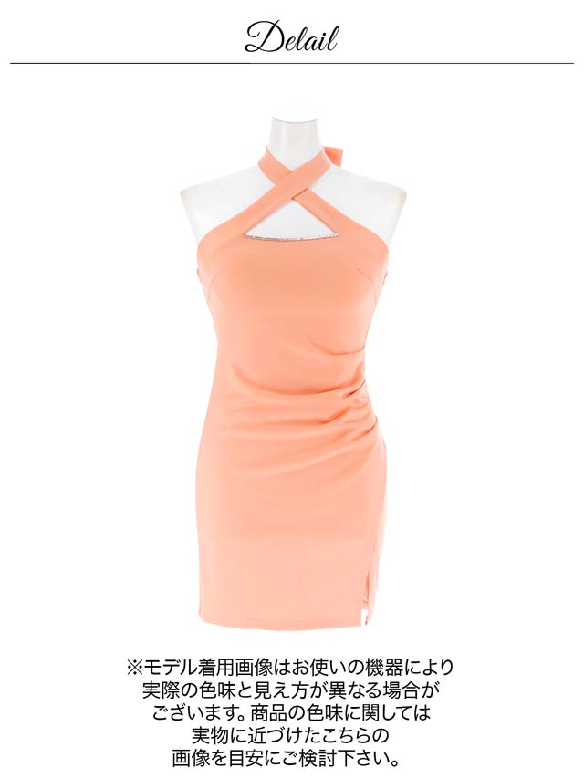 フロントクロスがデコルテを華奢魅せしてくれるキャバドレス。谷間部分には上品に輝くビジューをあしらい女性らしい華やかさもプラスしました◎ スリットから覗く太腿に思わずドキッとしてしまうような1着です。