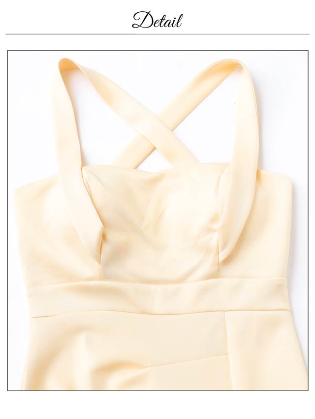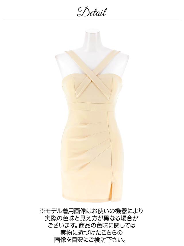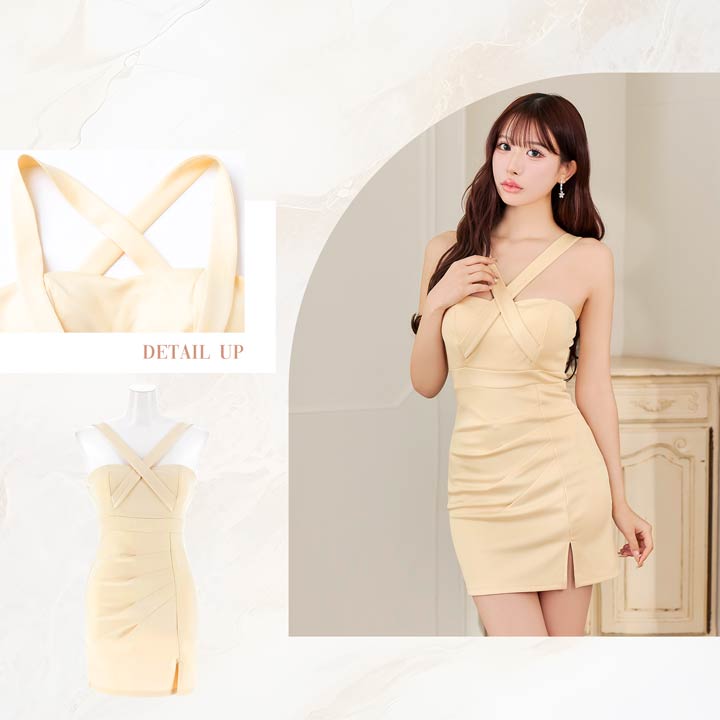 大胆なクロスデザインがデコルテに視線を集める、シンプルながら色気たっぷりのキャバドレス。タイトなシルエットが女性らしいボディラインを美しく演出します。スカート裾のスリットが脚をすらりと見せ、美脚効果も叶える一着です♪