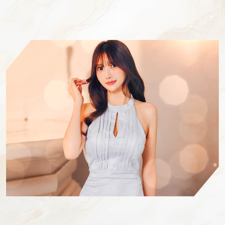 大人上品なくすみカラーのサテン生地が高級感を醸し出すキャバドレス。胸元にさりげないカットアウトを施したアメスリデザインで、肩まわりや谷間を色っぽく魅せてくれます♪ハイウエスト切り替えで腰の位置を高く見せ、脚長効果も期待できる1着です◎