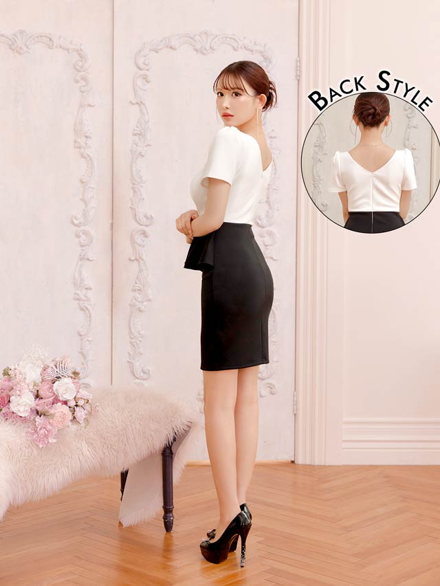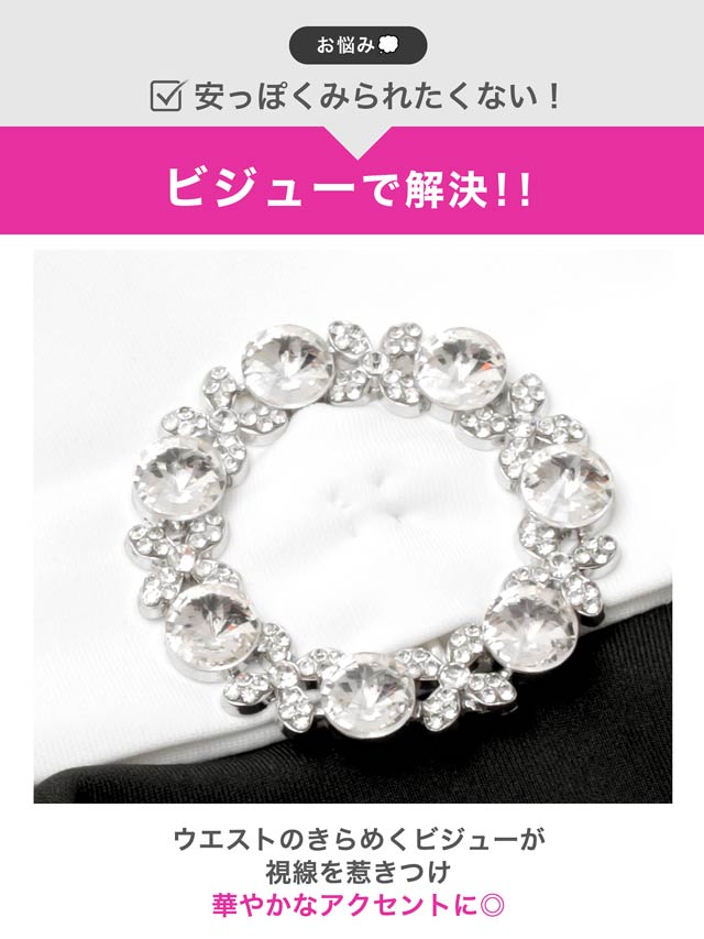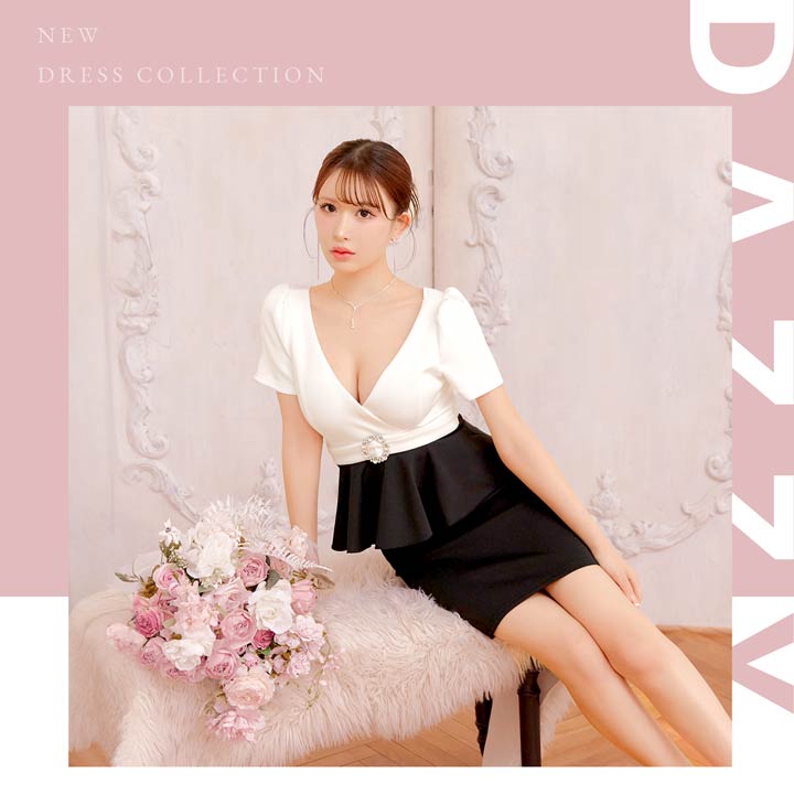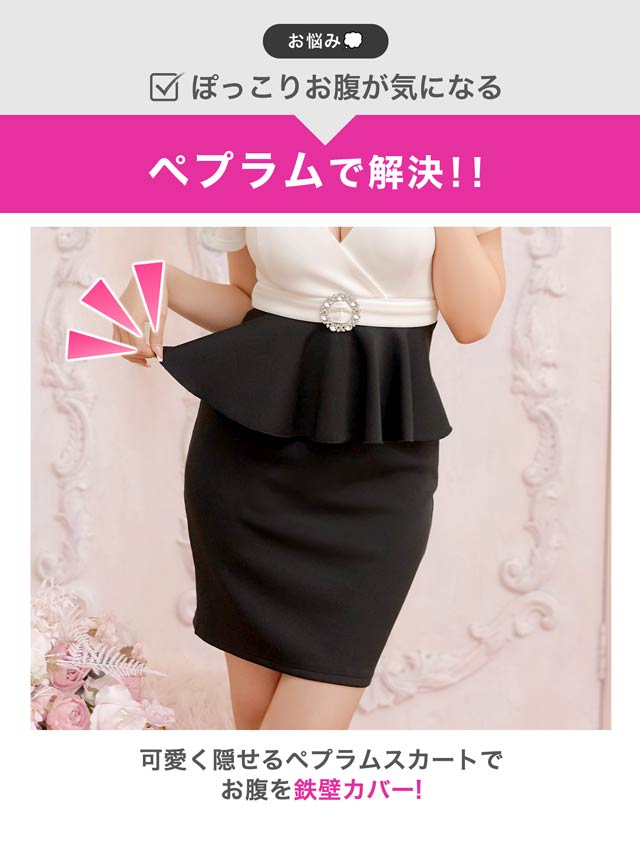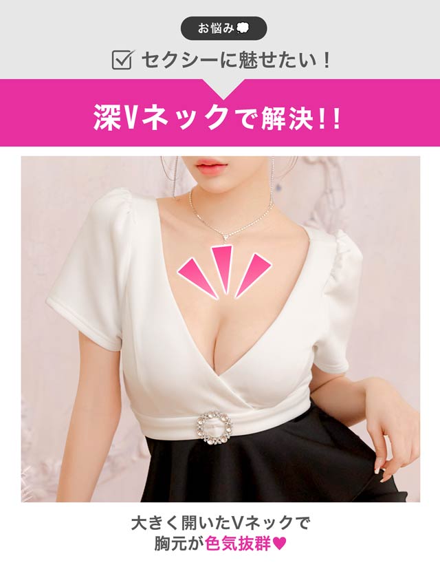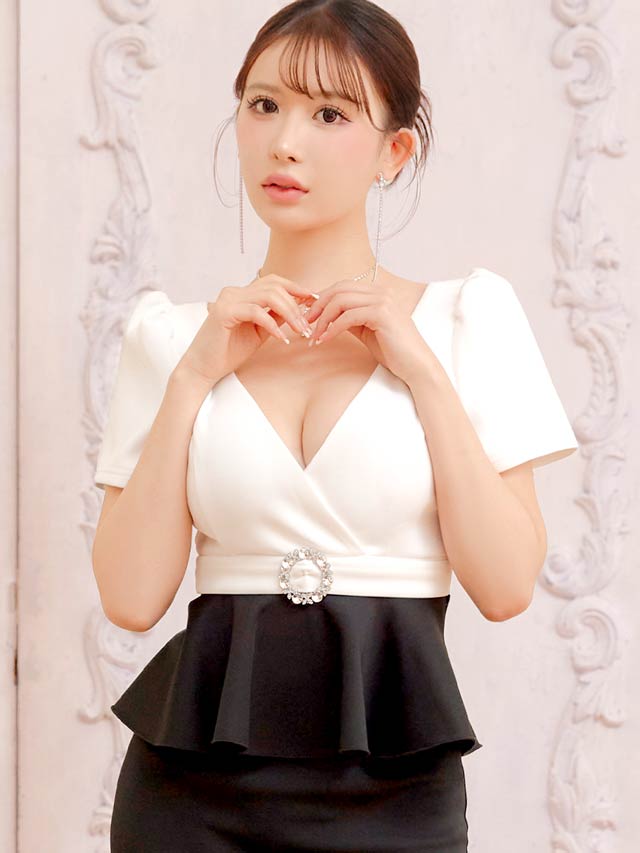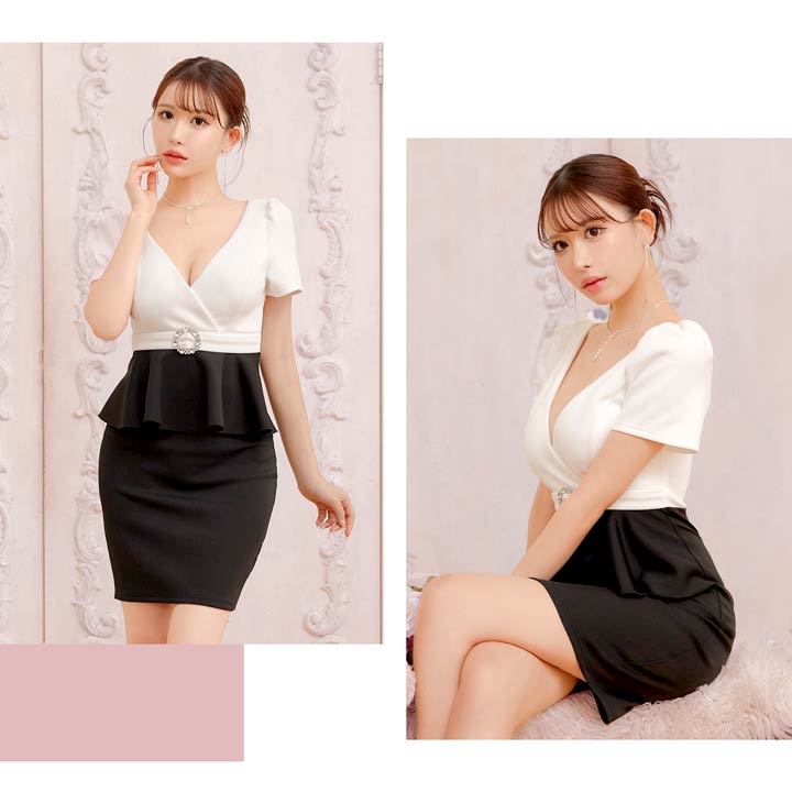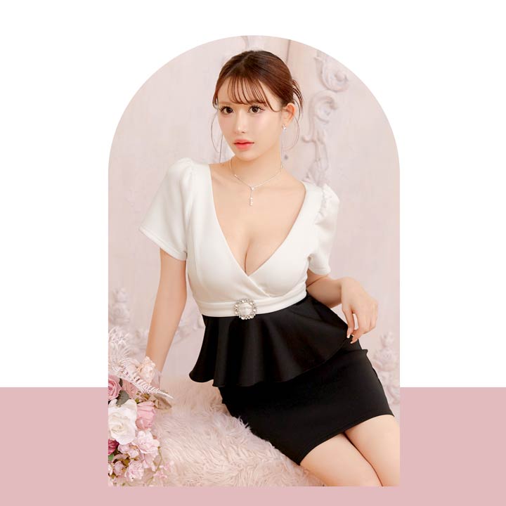 深めのVカットで谷間を美しく引き立て、女性らしい色気を演出するキャバドレス。ウエストにはきらめくビジュー装飾をあしらい、視線を集める華やかなアクセントに◎ペプラムデザインがボディラインにメリハリを生み、気になるお腹まわりもカバーしてくれます!