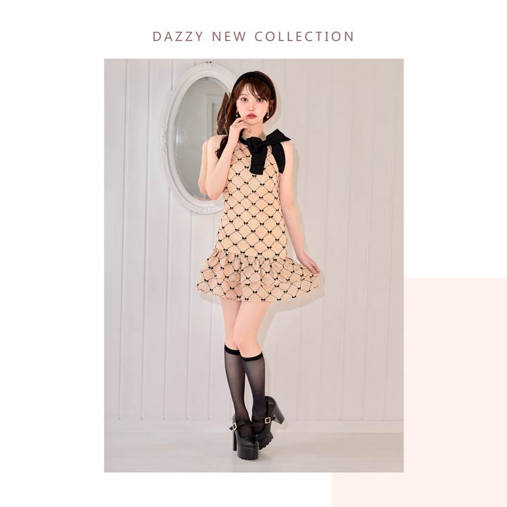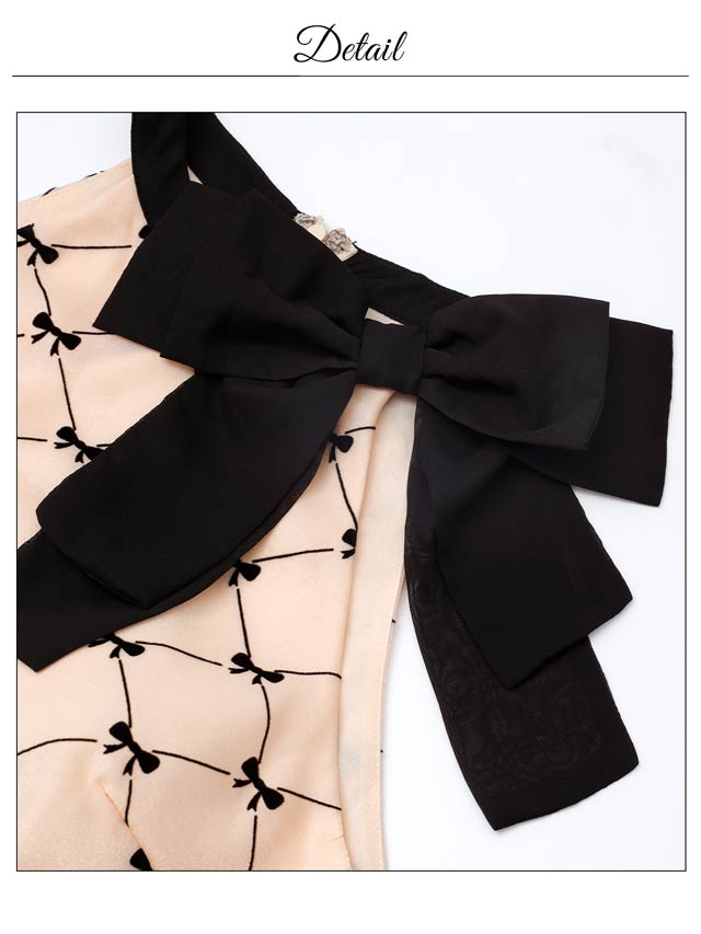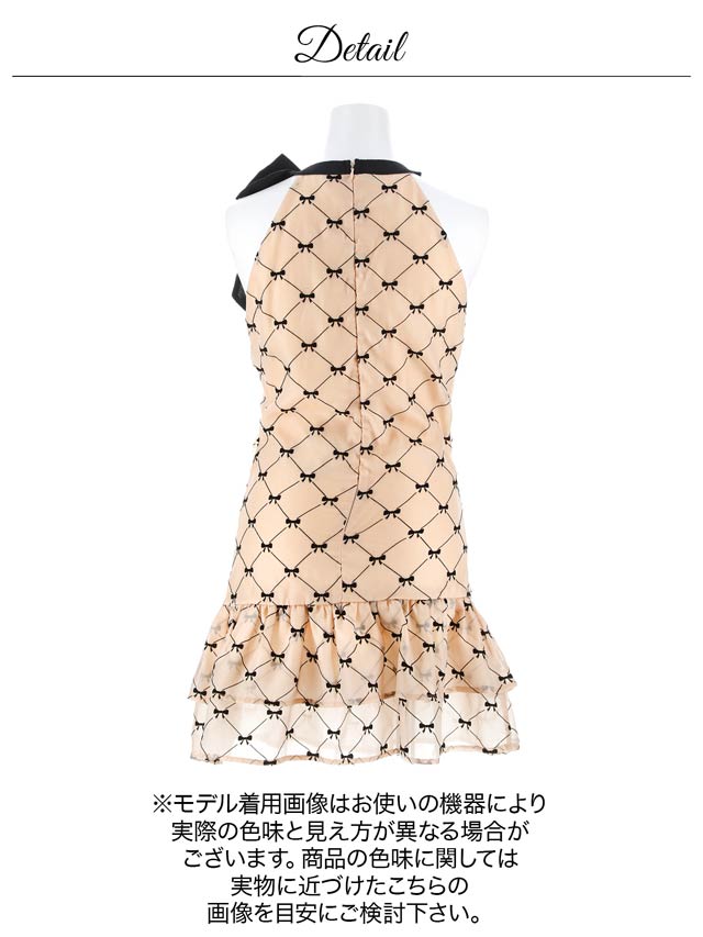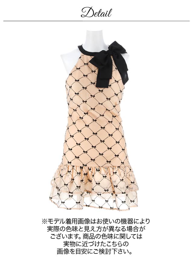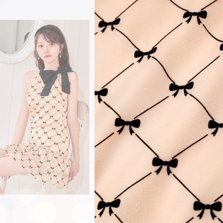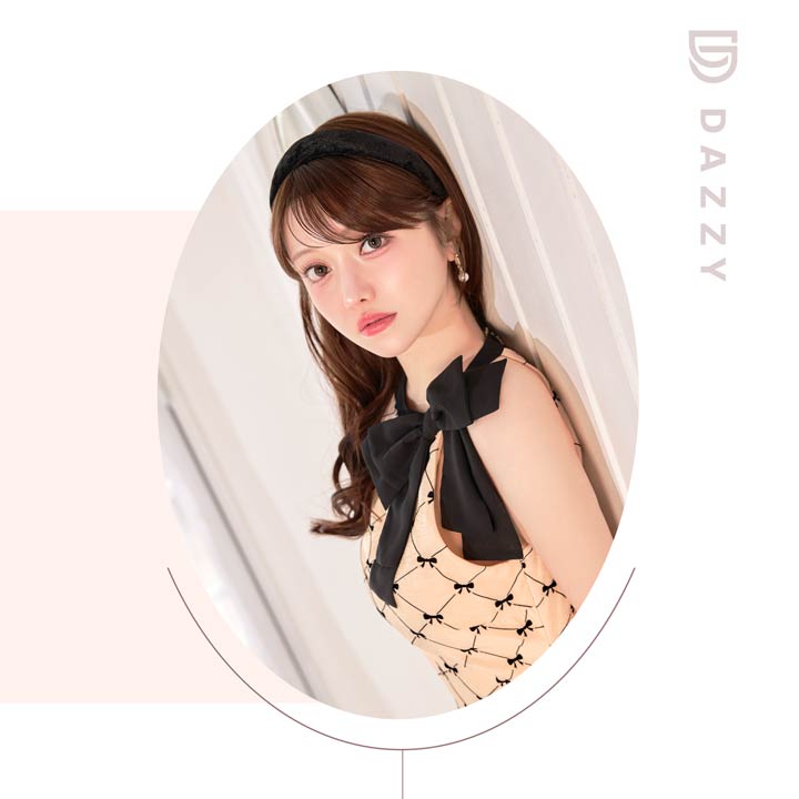 クラシカルなチェックに小さなリボン柄をあしらった大人可愛いキャバドレス。首元はアメスリ×大きめリボンで視線を引き寄せ華やかさアップにも◎ マーメイドスカートのシアーフリルが軽やかでフェミニンな印象をプラスしてくれる1着です。