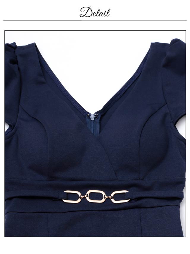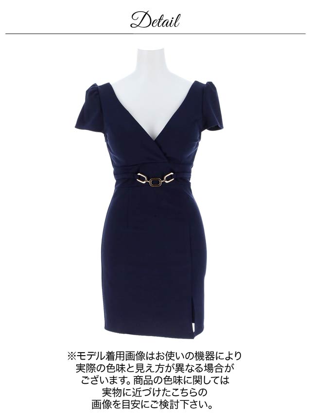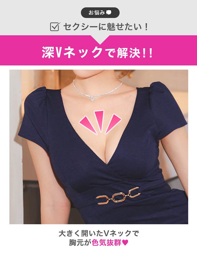 大胆な胸元開きがセクシーさ抜群なキャバドレス。カシュクールデザインでバストを強調させながら鎖骨ラインを美しく演出します◎ 洗練されたシルバーのチェーンベルトがウエストを細見せしながら華やかさをプラスしてくれる1着です。