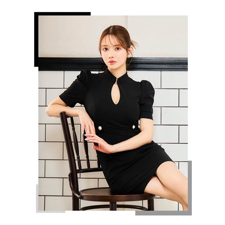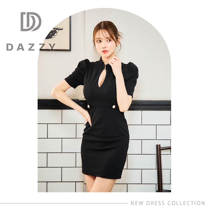 今人気なバックルビジューをあしらったハイネックに大胆な谷間ホールが視線を注ぐミニドレス。ウエストサイドのボタン装飾がシルエットにメリハリを付けてくれるワンポイントに◎ 媚びないクールさとセクシーさを持ち合わせ、男性が本能的に落としたくなっちゃうデザインです♪