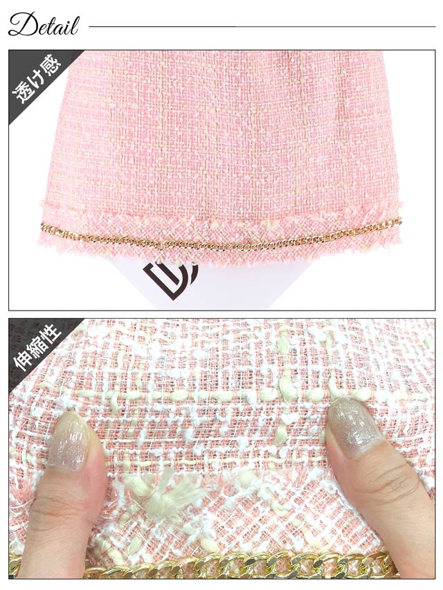 明日花キララ着用[SMLサイズ]ツイードチェーンノースリーブAラインミニドレス[3サイズ展開]