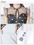 ドット柄刺繍や肩口のフリルが可愛らしいマーメイドシルエットのミニドレス。人気のフロントジップ付きで胸元の開き方をお好みで調節できちゃいます♪ハイウエスト切り替えなので脚長効果もバツグンです!