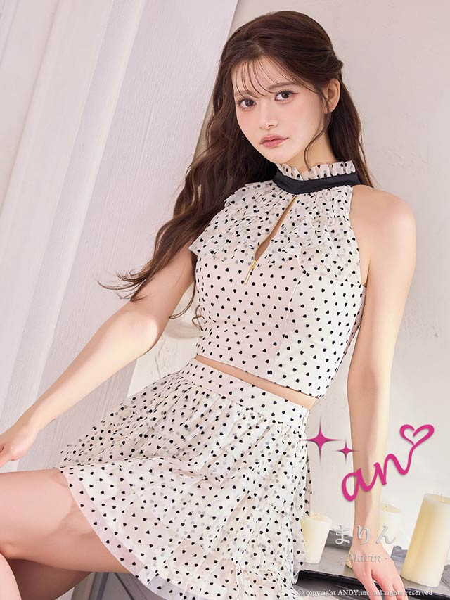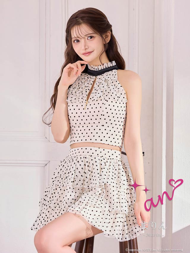 1/14新作!【今だけポイント20倍】[an]アメスリ胸元ジップドットハートフリルAラインミニ丈セットアップ[AOC-4042]