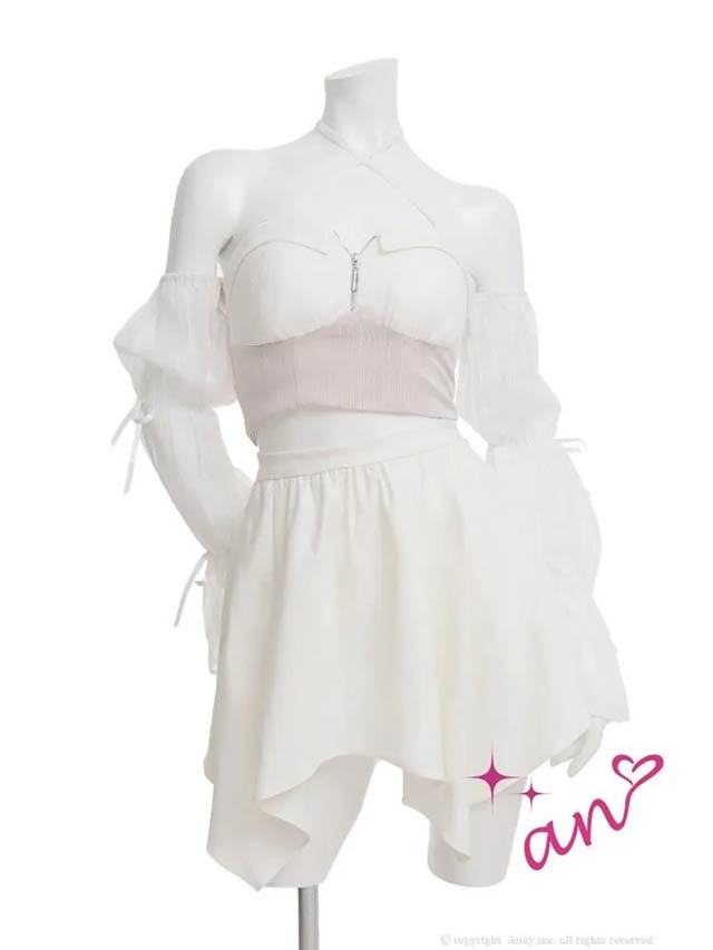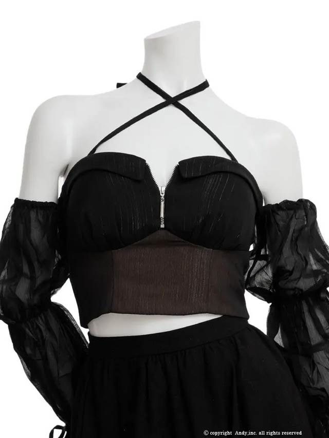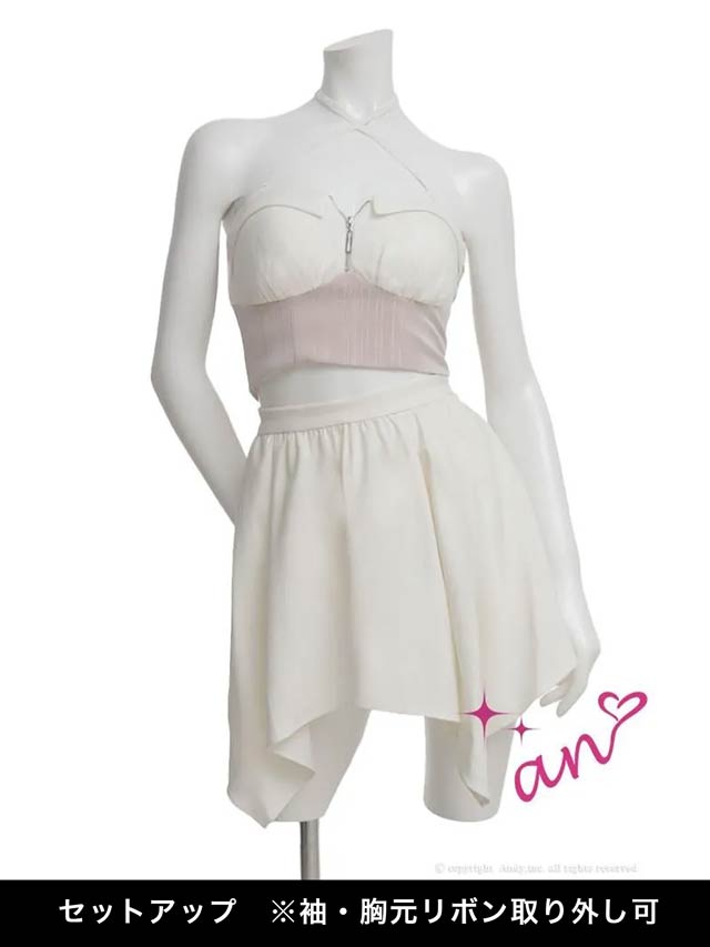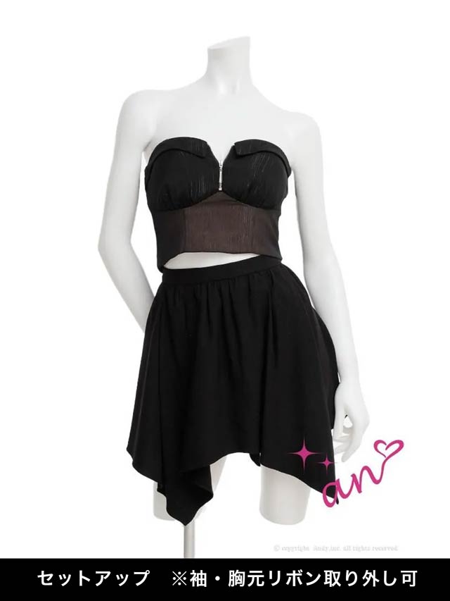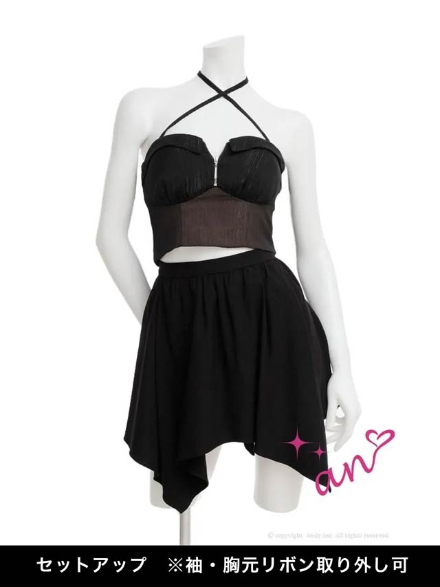 2/19新作![an]3wayクロスネックファスナーチュール袖フレアミニ丈セットアップ[AOC-4076]