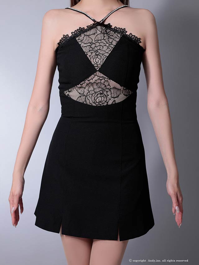 4/2新作!【ポイント20倍】[Andy]ヌーディカットレースホルターネックAラインミニ丈キャバドレス[AN-OK2961]