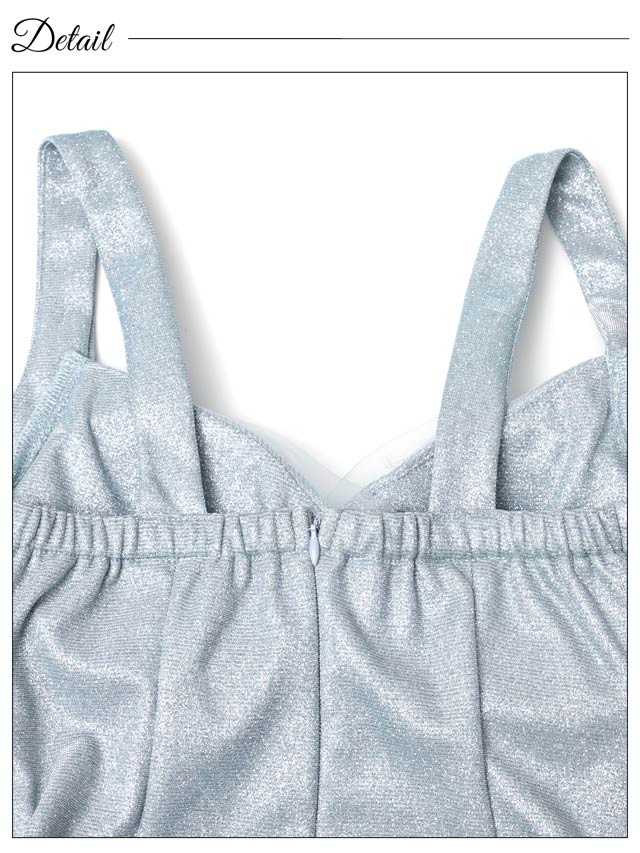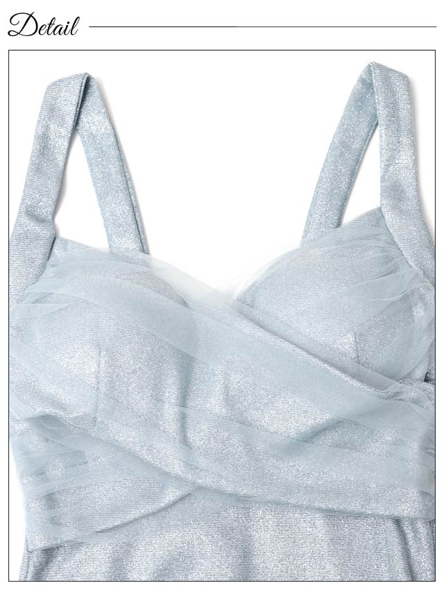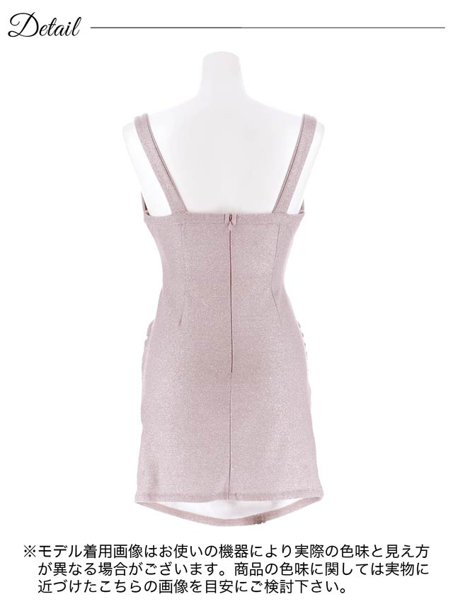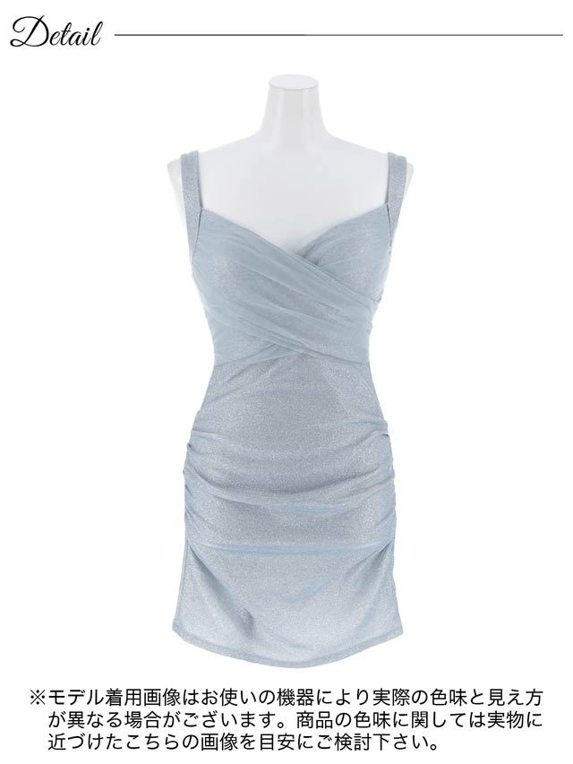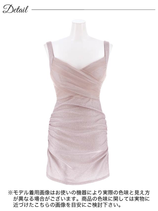 煌びやかなラメ生地を全面にあしらった華やかなミニドレス。バストラインを美しく演出するカシュクールデザインに、柔らかい印象を与えてくれるチュール重ねが上品さをプラスします◎ サイドギャザーのフィット感が細見せにもおすすめです♪