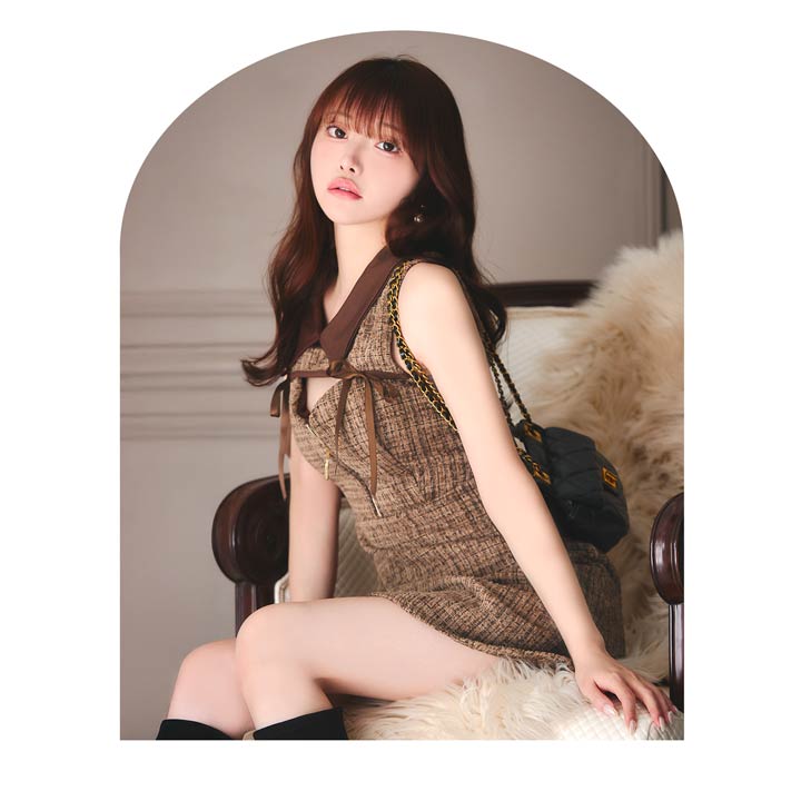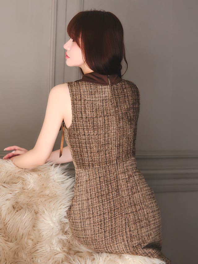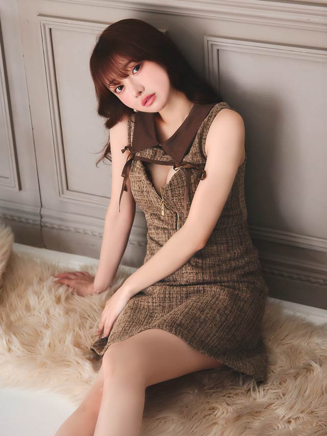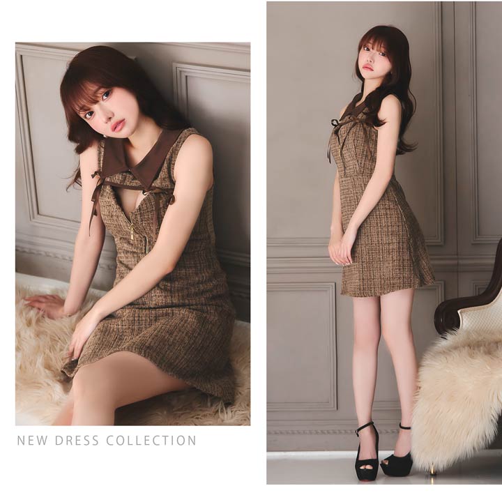 クラシカルな襟元デザインにファスナーから覗く谷間魅せがちょっぴりセクシーなキャバドレス。両サイドにあしらわれた華奢なリボン装飾が女の子らしいキュートなワンポイント◎ フレアスカートで柔らかい印象を与えてくれる1着です。