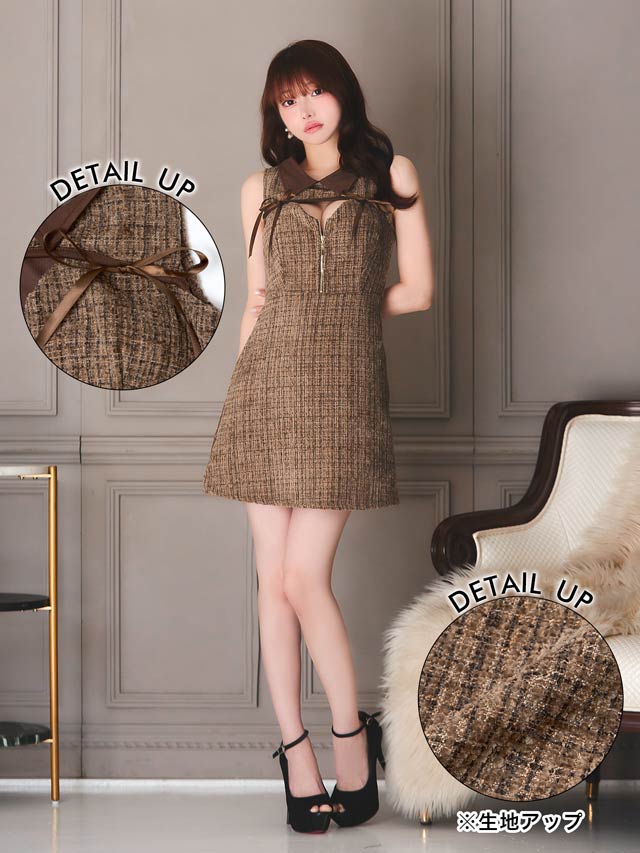 1/16新作!クラシカル谷間ジップホールリボンAラインミニ丈キャバドレス[SML/3サイズ展開]