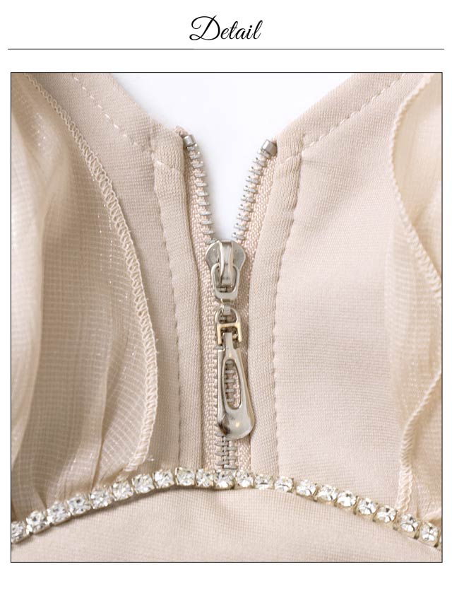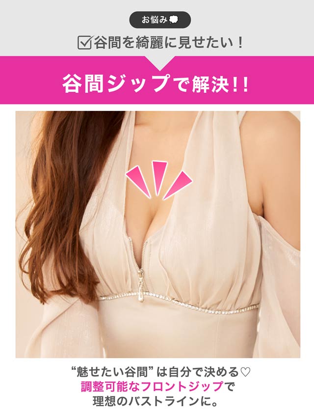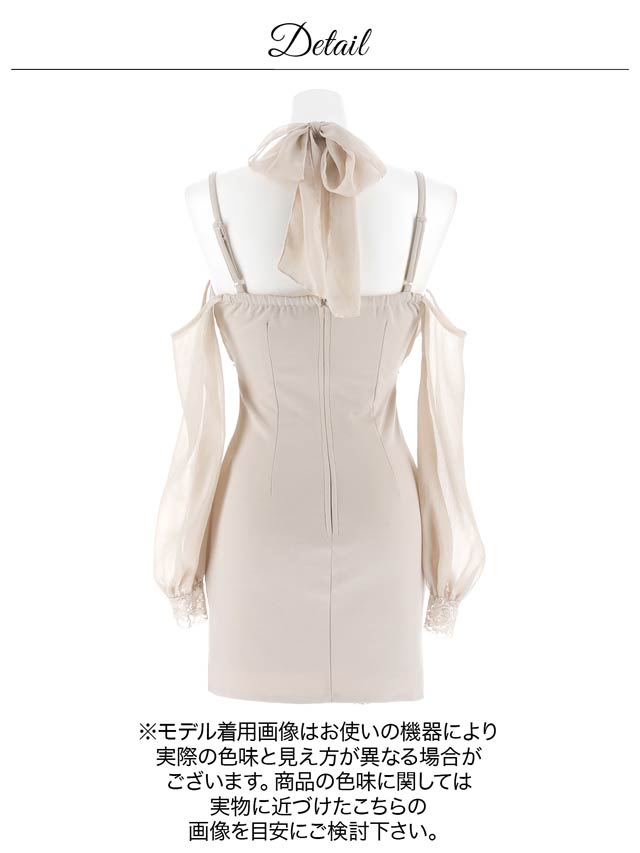 艶やかなホルターネックデザインが高級感漂うミニドレス。華奢な肩見せもしっかり取出来るオフショル長袖が大人っぽい色気を引き立たせます◎ ファスナー仕様や煌びやかなビジューを加え華やかさも欠かさない1着です。