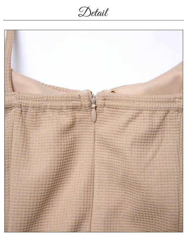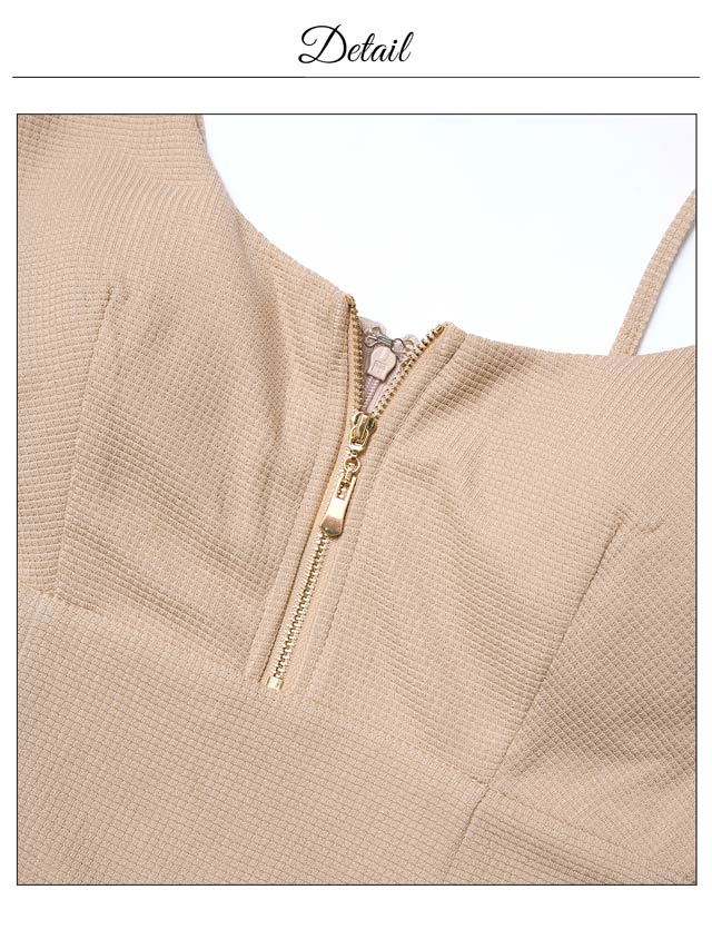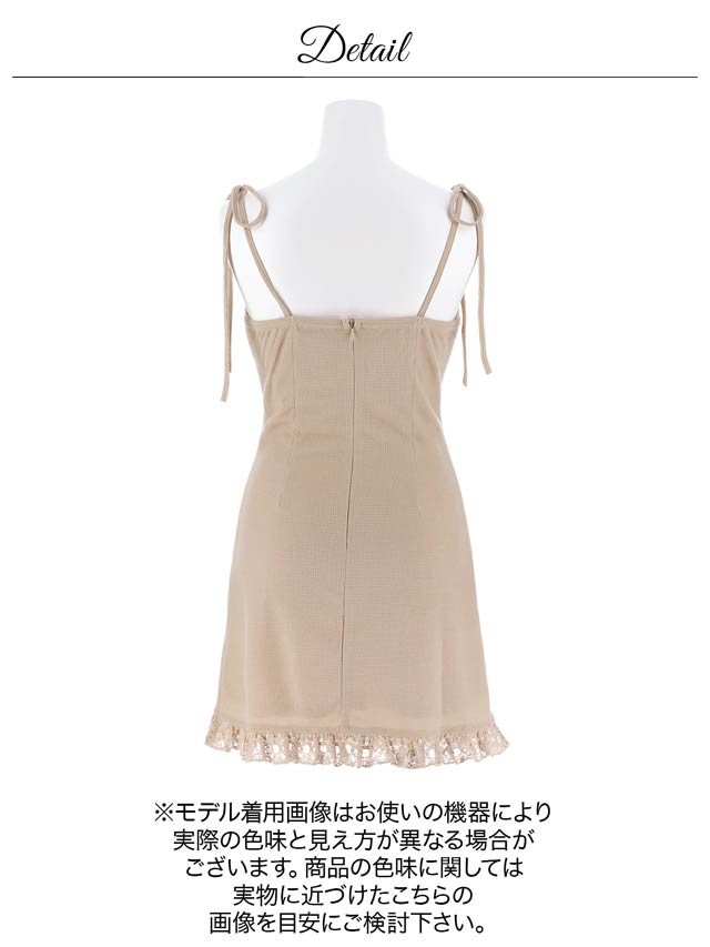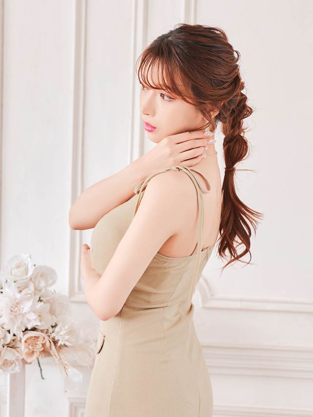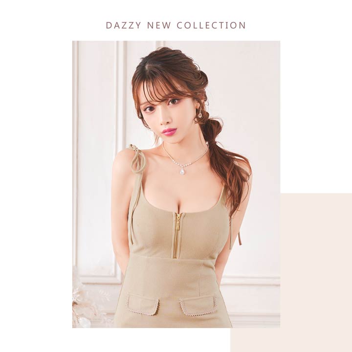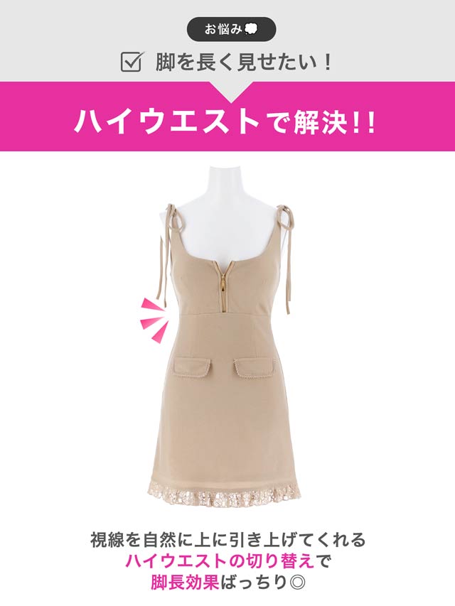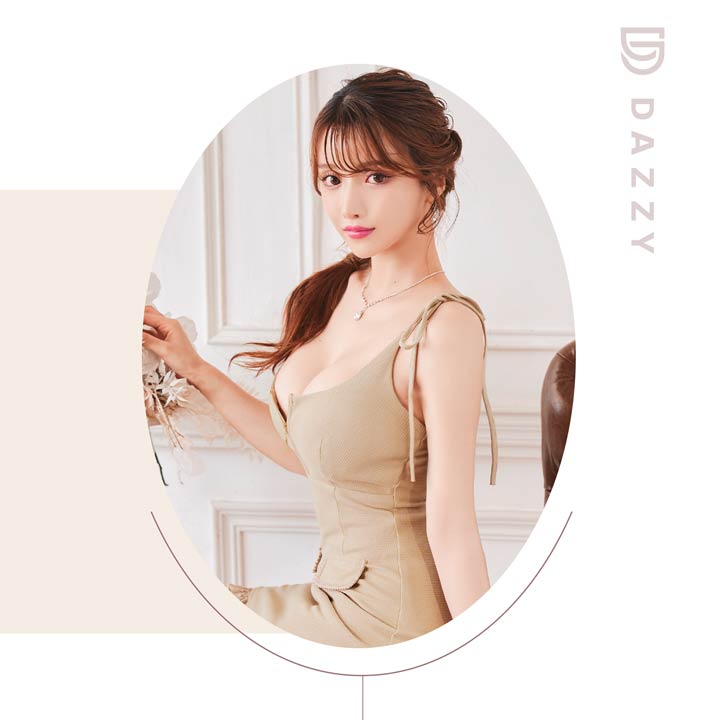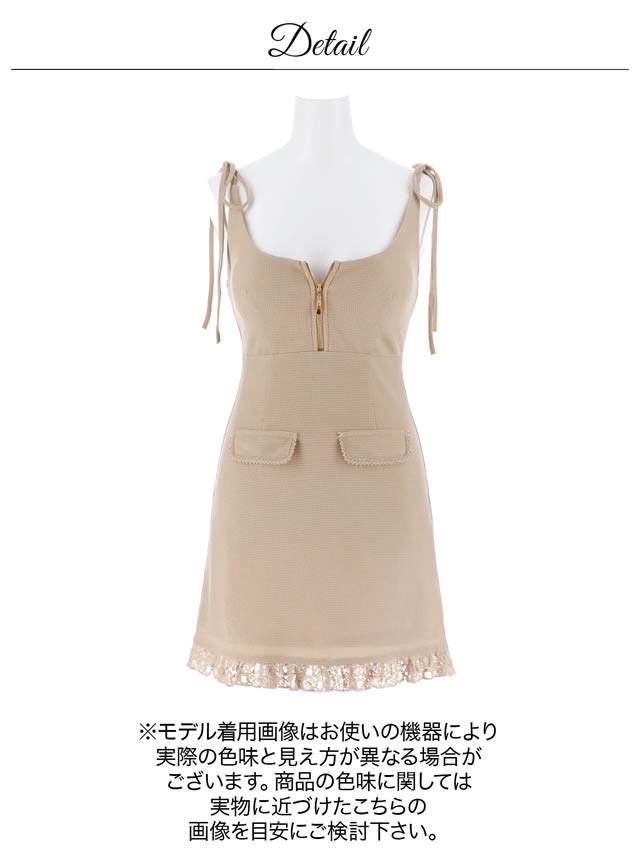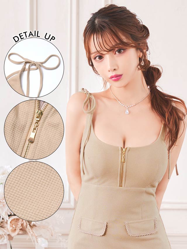 華奢なリボンストラップが大人の色気と可愛らしさを引き立てるキャバドレス。胸元にはフロントジップをあしらい開き具合を調整出来るのがポイント◎ スカート裾のレースもアクセントになっており細部まで抜かりないデザインに仕上げました。