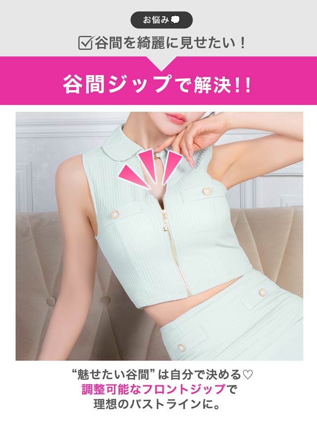 3/25新作!高級感抜群な襟付きワッフルチェック×谷間魅せファスナーのタイトミニ丈セットアップキャバドレス[SML/3サイズ展開]