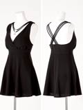 [S~LLサイズ]ネックレスモチーフ付きバッククロスノースリAラインミニドレス[4サイズ展開][プチプラドレス]