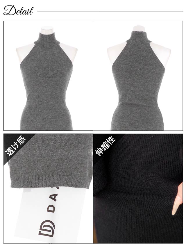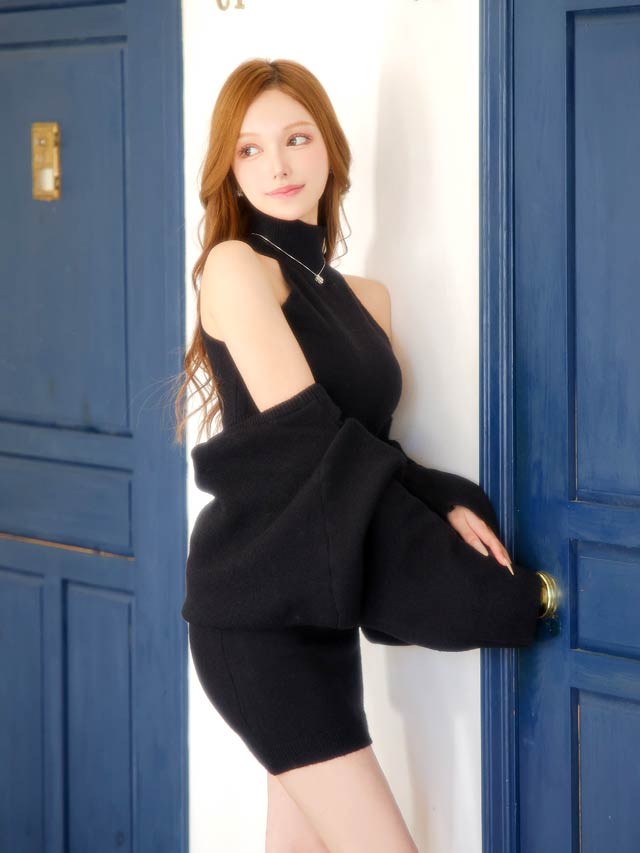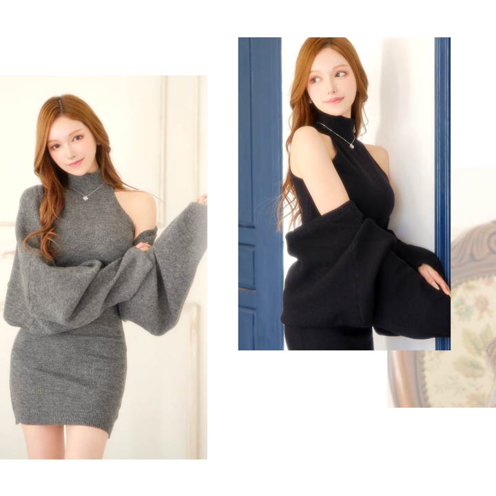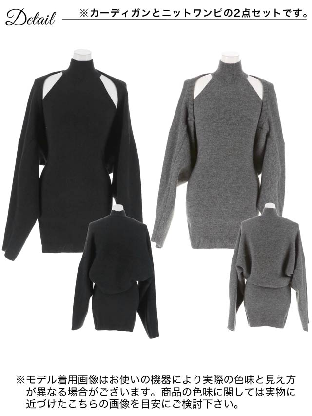 シンプルなワンカラーデザインに大胆なアメスリ仕様が色気抜群なニットワンピース。ボリューム感のある長袖のカーディガンを羽織れば女性らしい抜け感も演出出来ちゃう1着です♪