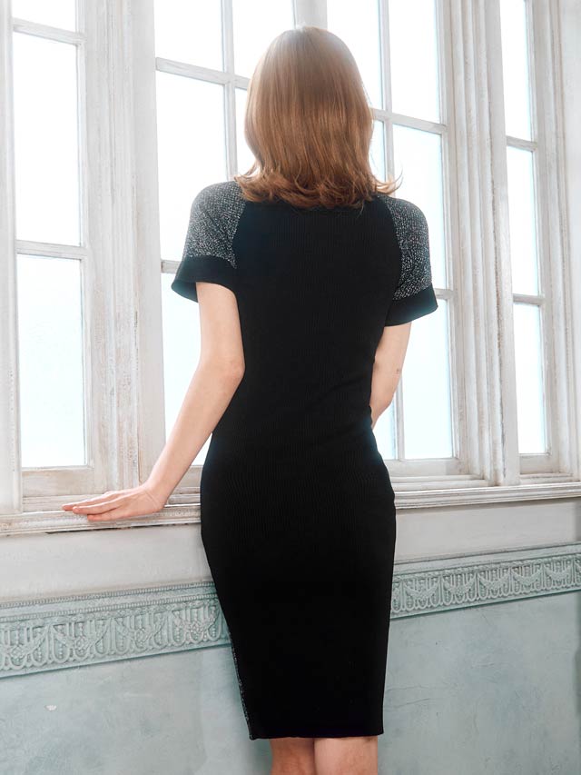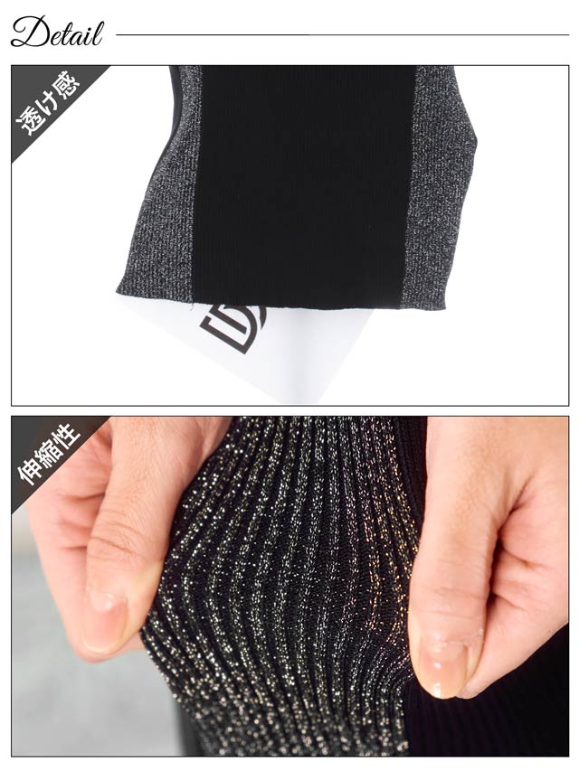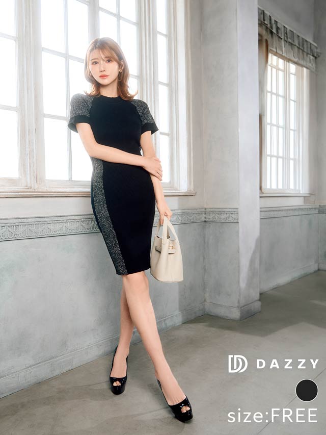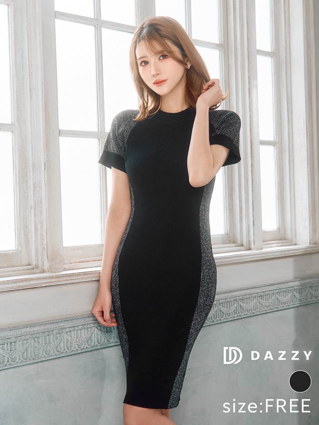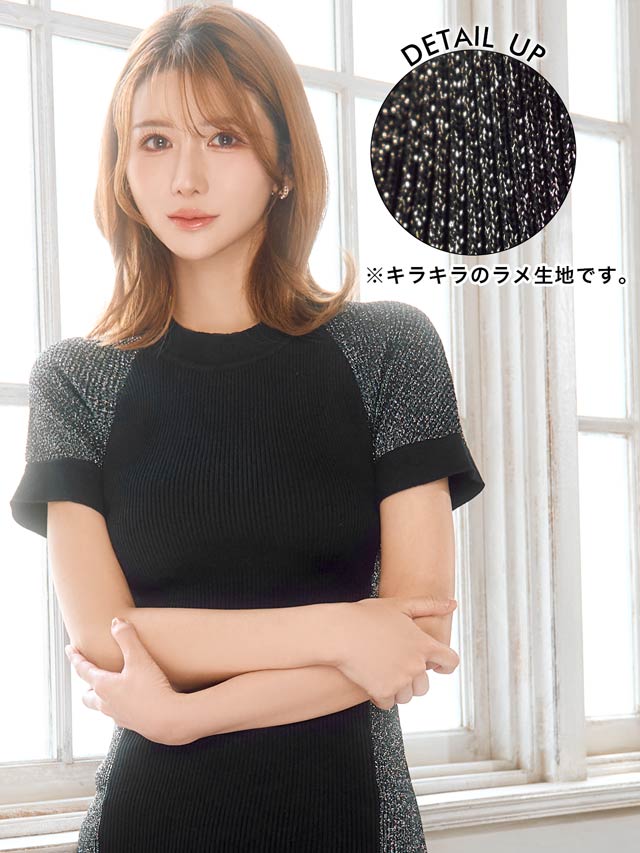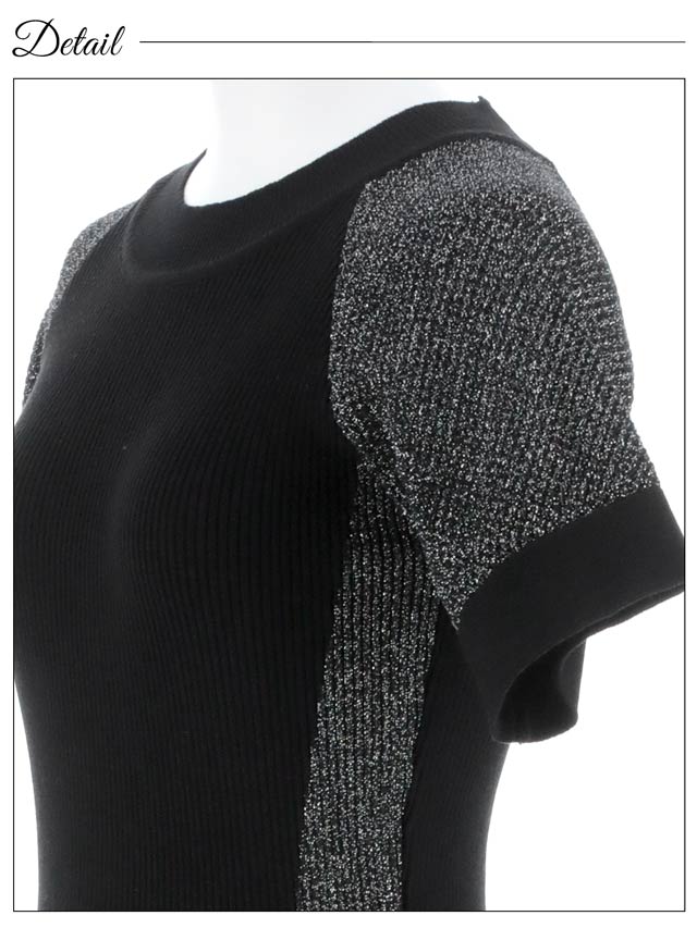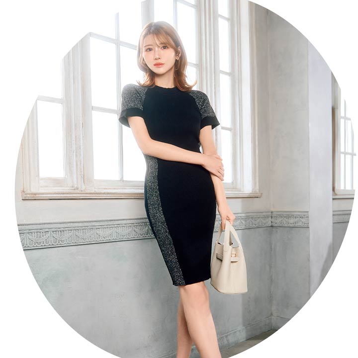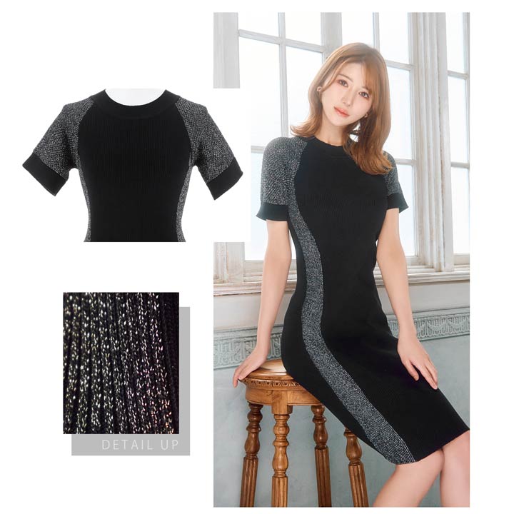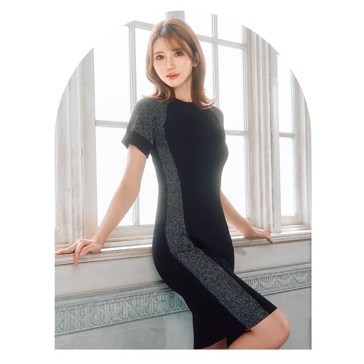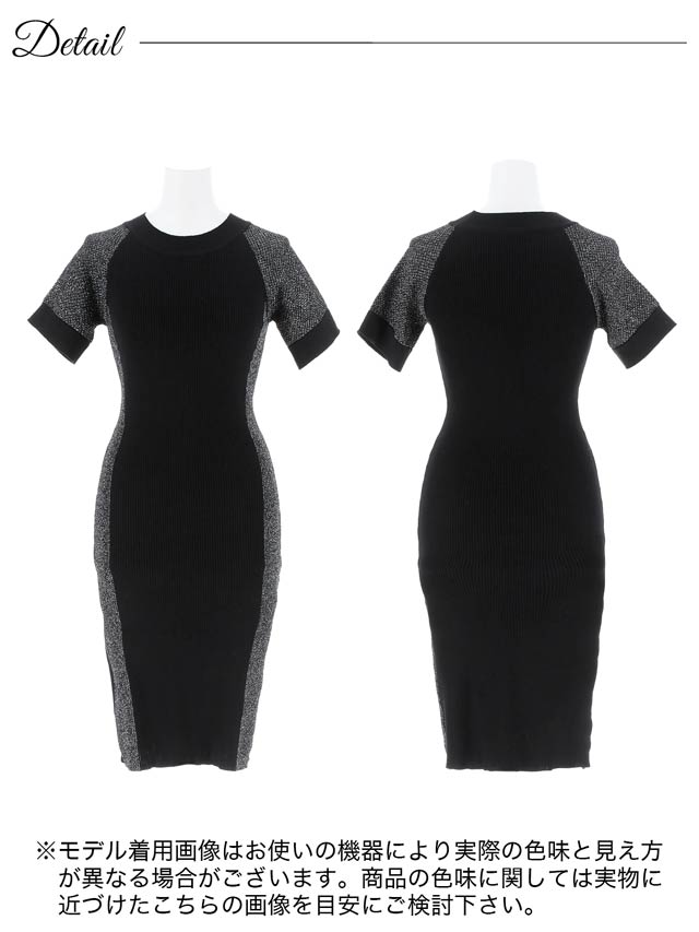 サイド切り替えのバイカラーデザインが女性らしい曲線美を際立たせるワンピース。キラキラ輝くラメラインが涼し気な印象!伸縮性の効いたニット素材でくびれラインをしっかりアピール出来ちゃいます。カジュアルにも綺麗めにも着こなせるコーディネートの幅広がる1着です◎
