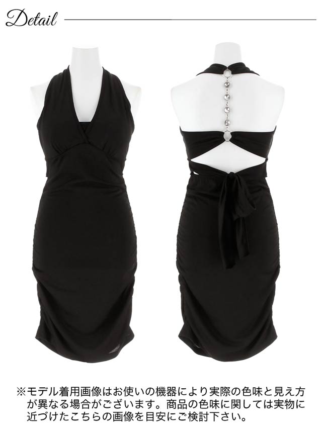後ろ姿からも色気溢れるカットアウトデザインに背中心で輝くシルバービジューがエレガントなワンピース。鎖骨から肩先にかけてのラインを美しく見せてくれるホルターネック仕様でこなれ感もばっちり。パーティーシーンでも活躍するラグジュアリーな1着です♪