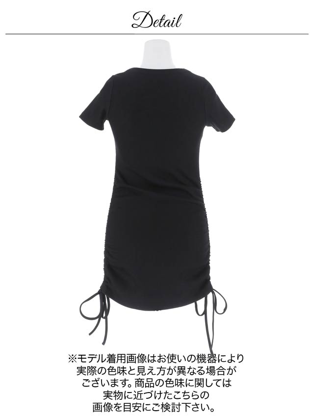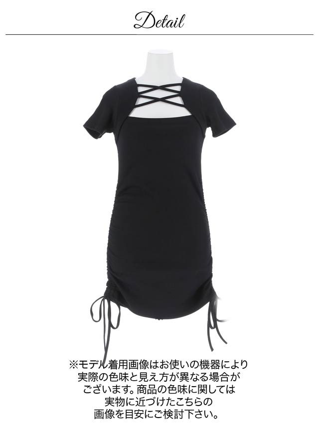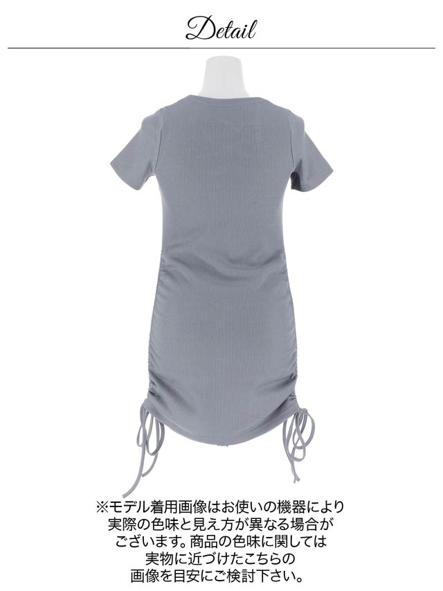 1/6再販!レースアップが今っぽいサイドギャザーSEXYリボン半袖ニットワンピース[カジュアル/dazzy closet]
