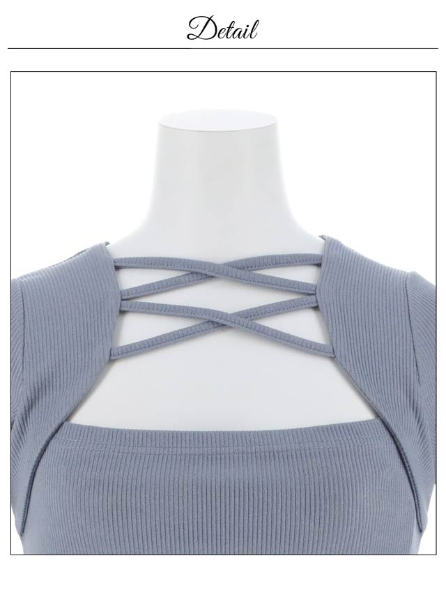 デコルテにあしらわれたレースアップがトレンドライクなニットワンピース。サイド紐仕様でお好みでスカート丈を調整できるのがポイント◎ ギャザーを寄せたタイトなシルエットが女性らしい曲線美を演出します♪