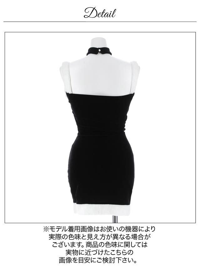 セクシーに谷間を出したい人にも隠したい人にも、どちらでも可愛く着れるフロントジップのタイトワンピース。ウエストはメッシュ生地の程よい透け感で、カットアウトが初めてでも安心♪ 大胆なノースリーブは他と被りにくいデザイン性&華奢な肩見せも出来ます。サンタ帽、サンタクリップ、チョーカー、ワンピース、レッグウォーマーの豪華な5点セットです。
