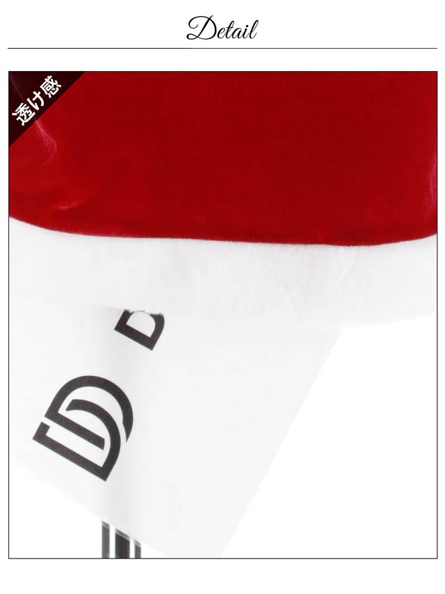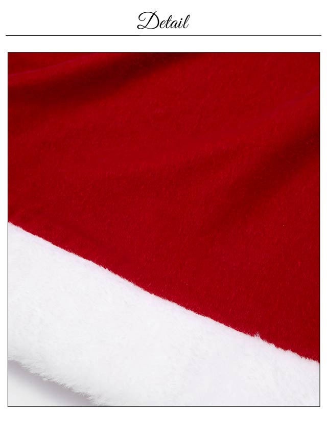 サンタコスプレ商品の白地部分に程度の差はあるものの、メイン生地の色移りがある場合がございます。検品はしっかりと行なっていますが、デザインの仕様上ある程度の色移りが出てしまう旨、ご了承の上ご購入よろしくお願い申し上げます。