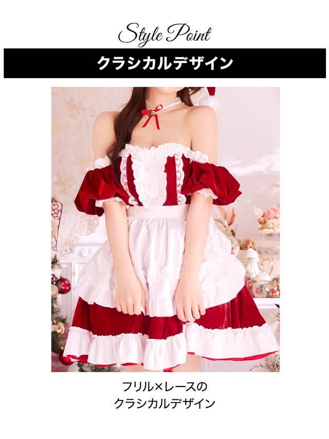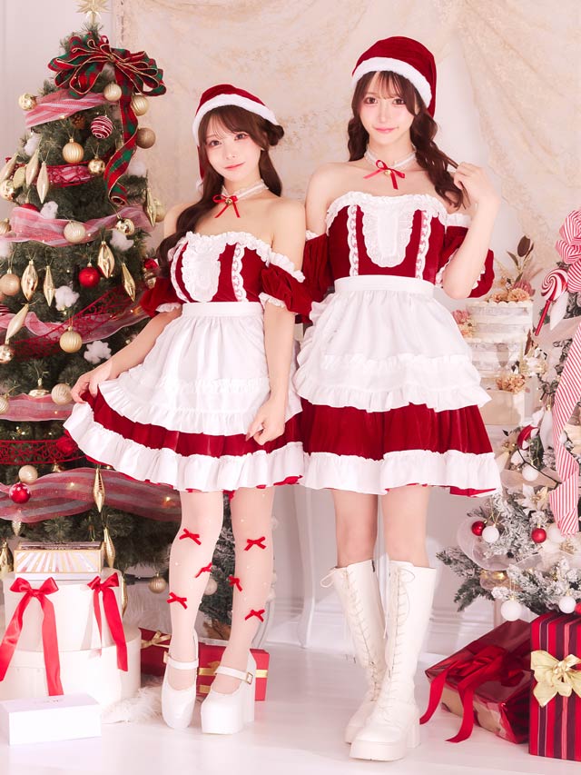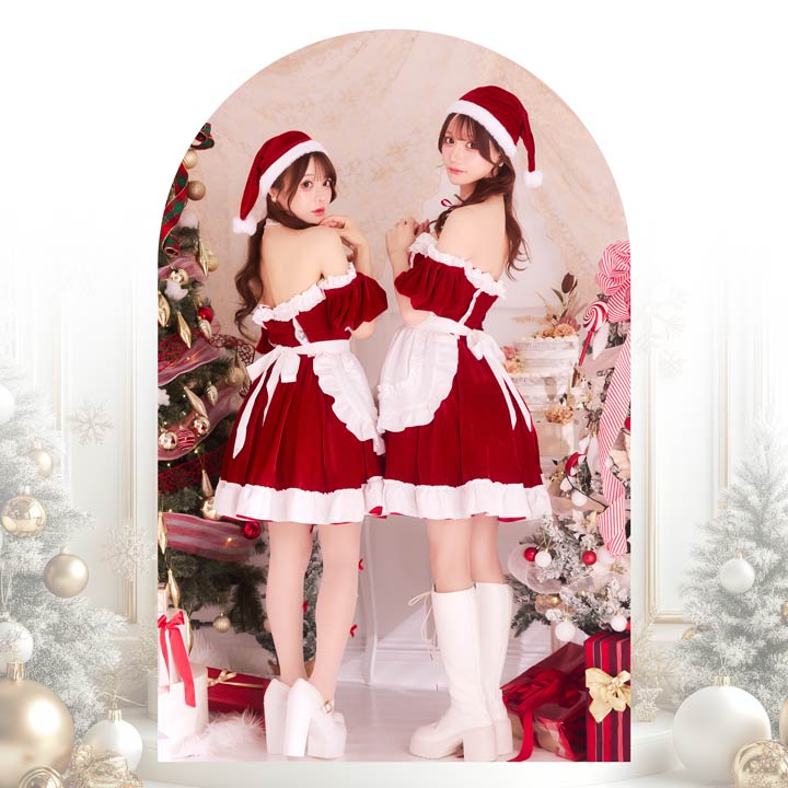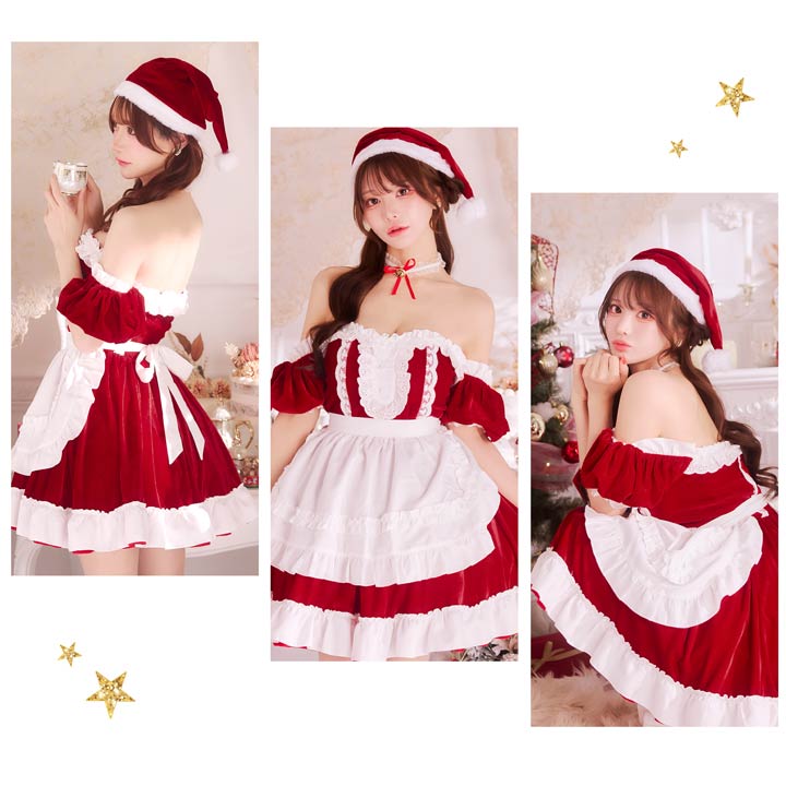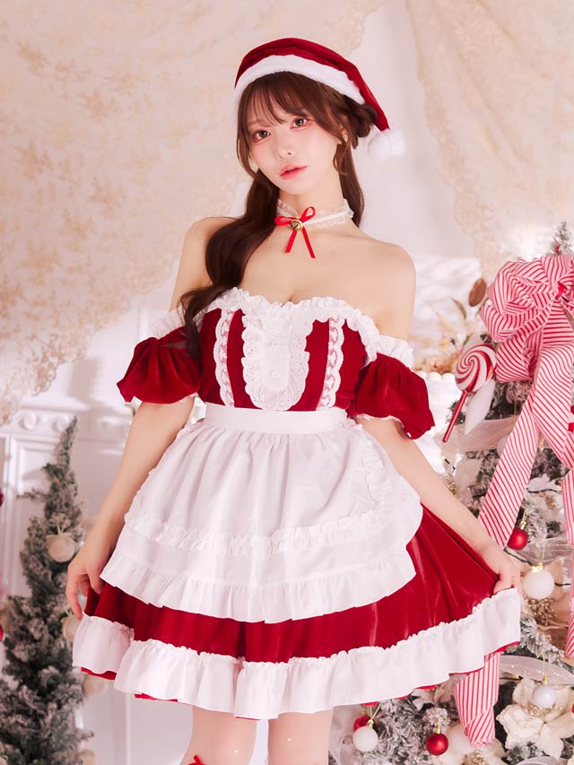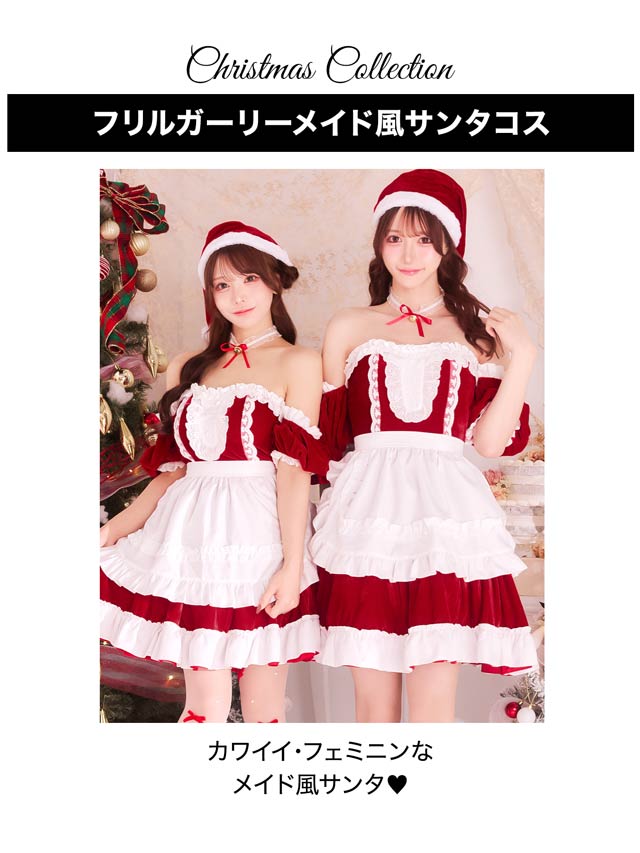 11/20新作!【4点SET】フリルガーリーメイド風オフショルサンタコス【2025サンタ/コスプレ】