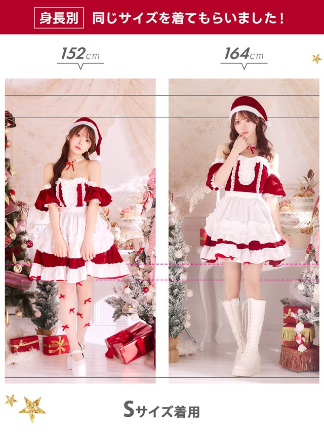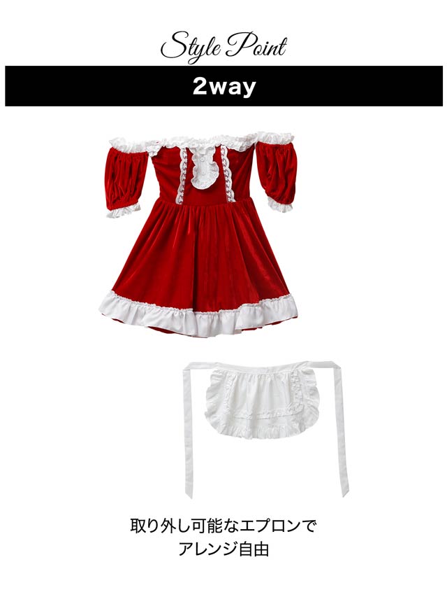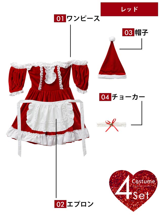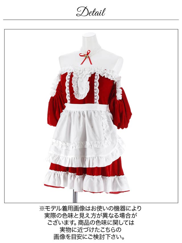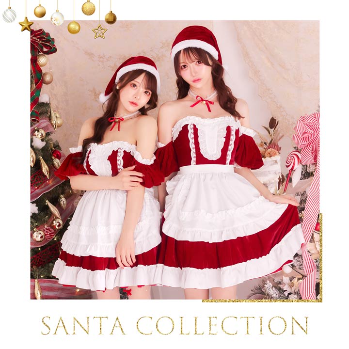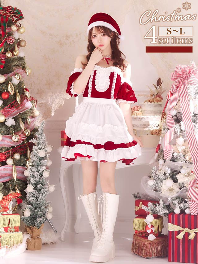 11/20新作!【4点SET】フリルガーリーメイド風オフショルサンタコス【2025サンタ/コスプレ】