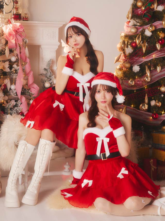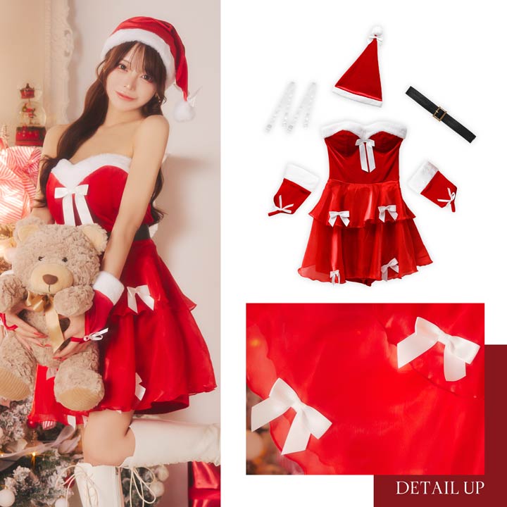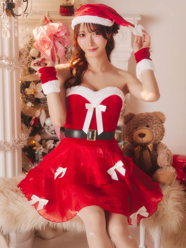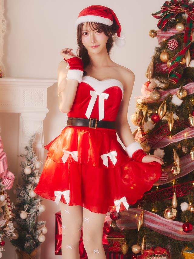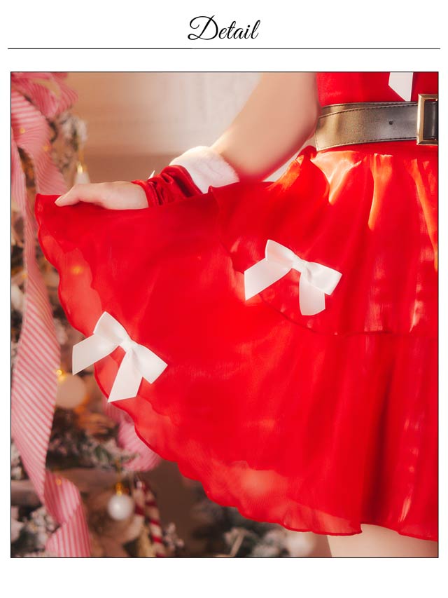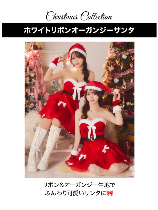 11/20新作!【5点SET】ホワイトリボンオーガンジーサンタコス【2025サンタ/コスプレ】