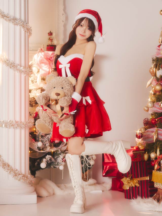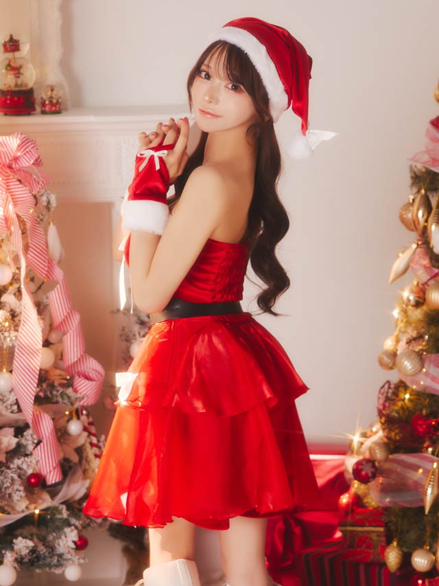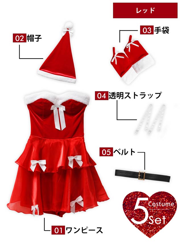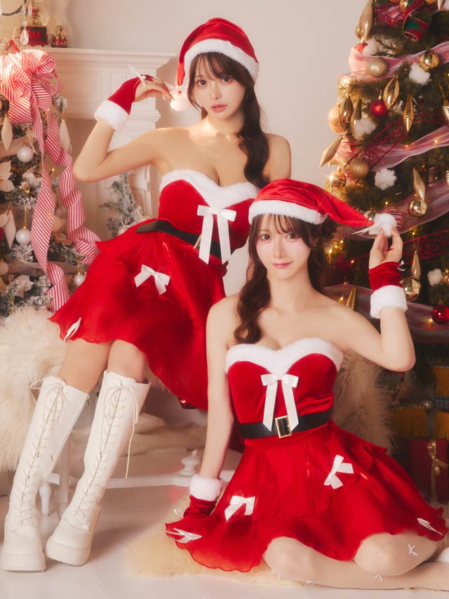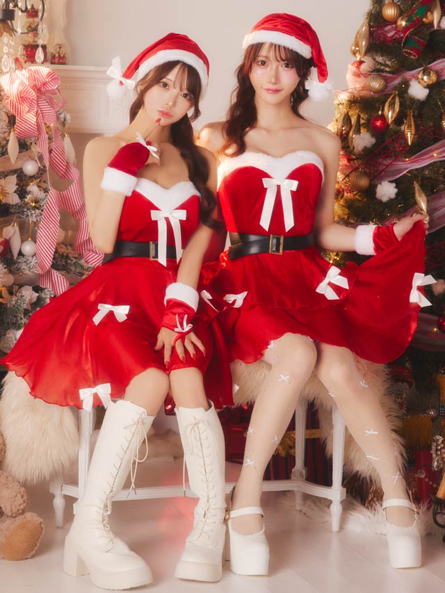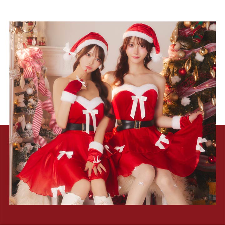 11/20新作!【5点SET】ホワイトリボンオーガンジーサンタコス【2025サンタ/コスプレ】