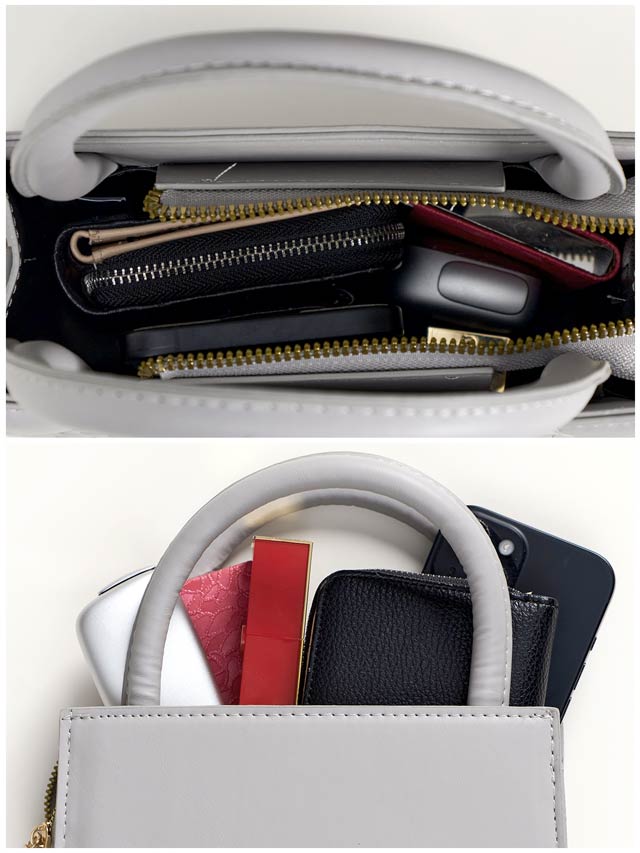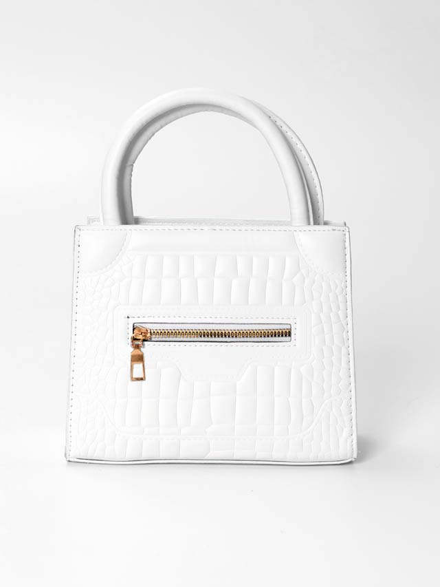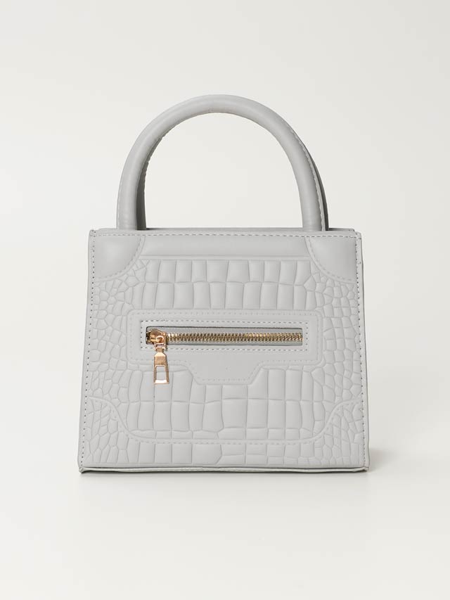 高級感のあるクロコ型押しデザインがエレガントなショルダー&ハンドバッグ。フロントのジップディテールも存在感を放ち、コーディネート全体を格上げしてくれます。スタイリッシュながらも小物をしっかり収納できる万能アイテムです。