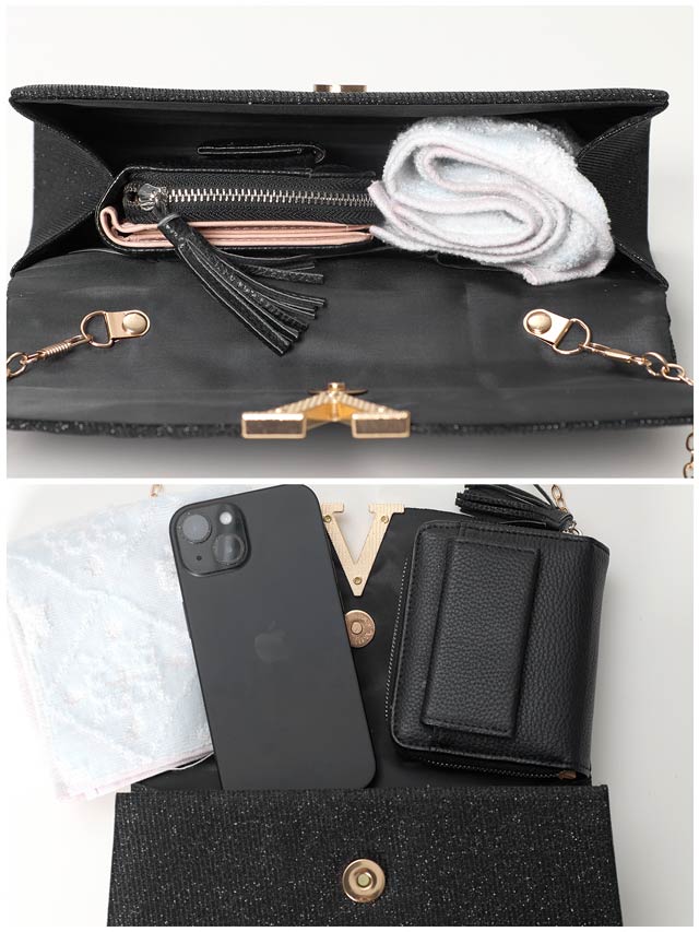 3/16新作![2way]グリッタープリーツVビジュー店内クラッチ&ショルダーバッグ