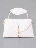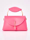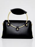 レザー生地にサイドのスタッズがお洒落なハンドバッグ。中央に共生地を使用したチャームや、華奢な持ち手部分にレザーを加えたデザインもアクセントに◎ 便利なショルダー付きの2way仕様です♪