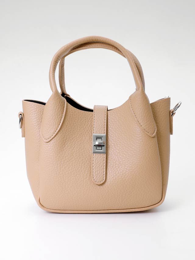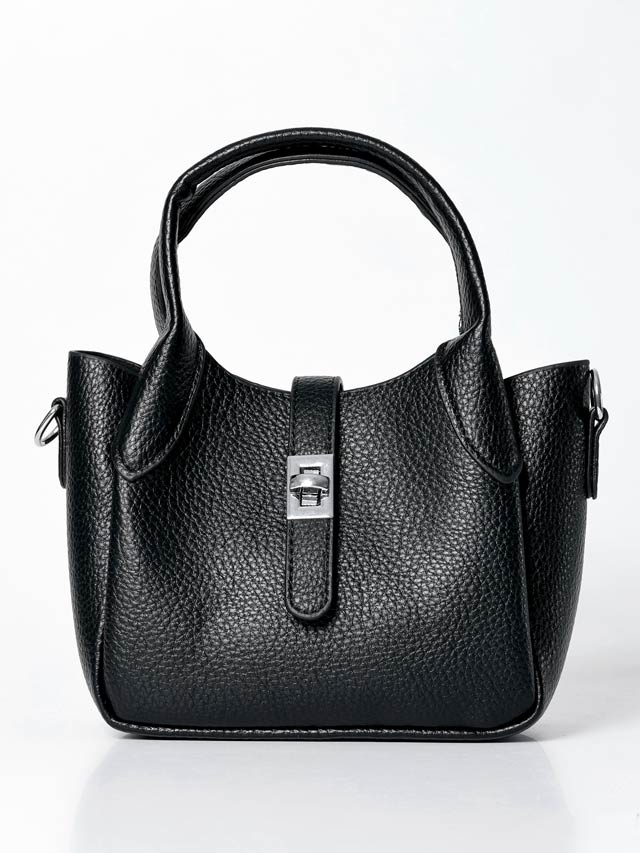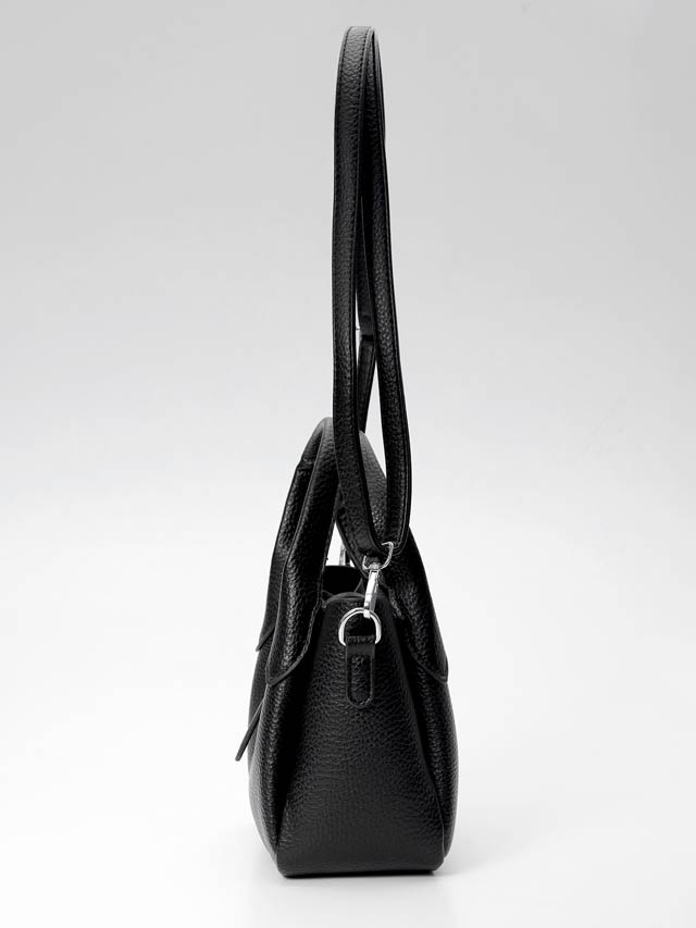 シンプルながらも間口のベルトがアクセントになったハンドバッグ。小ぶりながらも大きなマチが荷物の出し入れもしやすく機能性ばっちり◎ ワンカラーなので上品かつ様々なコーデに合わせやすいのもポイントです。